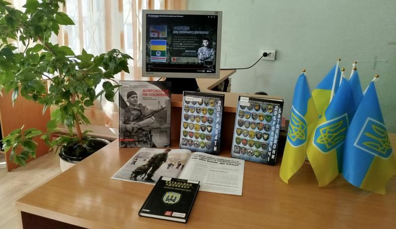У відділі абонемента відбулася патріотична година «За покликом серця» присвячена Дню українського добровольця (проєкт «З Україною в серці»). Учасники заходу вшанували тих, хто без вагань став на захист нашої Батьківщини. Ми розповіли молоді про історію сучасного добровольчого руху та історію запровадження Дня українського добровольця. Переглянули відео та познайомилися з літературою по темі. В бесіді з учнівською молоддю дійшли висновку, що Добровольці – це генетичний код нашої свободи, це національна риса українців, що гартувалася століттями.