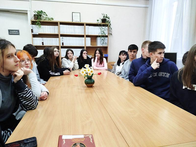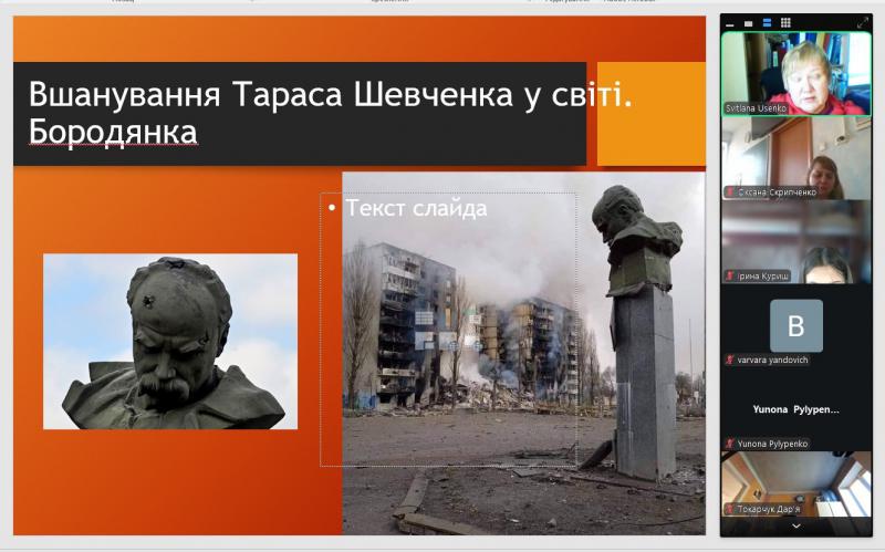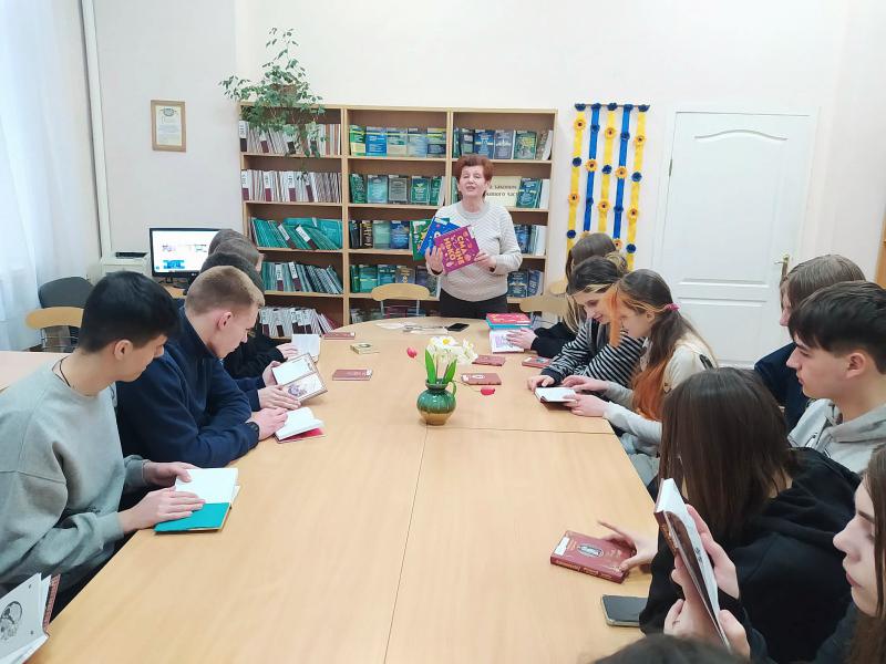Відділ наукової інформації та бібліографії продовжує співпрацю з Дніпровським ліцеєм №1 Дніпровської міської ради. В межах проєкту відбулася чергова інформаційно-пізнавальна зустріч з ліцеїстами середніх класів. З нагоди річниці від дня народження та Дня пам’яті Т. Г. Шевченка діти ознайомилися з презентацією «Т. Г. Шевченко – батько української нації», з якої дізналися про родину Т. Шевченка, його дитячі та юнацькі роки, історію викупу з кріпацтва, літературний доробок та його значення для української мови та літератури. Ліцеїсти дізналися про особливості вірша «Садок вишневий коло хати» та ознайомилися з історією створення вірша «Заповіт», дізналися про історію публікації збірки «Кобзар». Цікавим для слухачів був матеріал про увічнення пам’яті Кобзаря – музеї, пам’ятники, портали, перший у світі ШІ Аватар Шевченка. Цікаве спілкування про значення Тараса Григоровича Шевченка для літератури та історії України завершило зустріч з нагоди ювілею видатної письменниці.