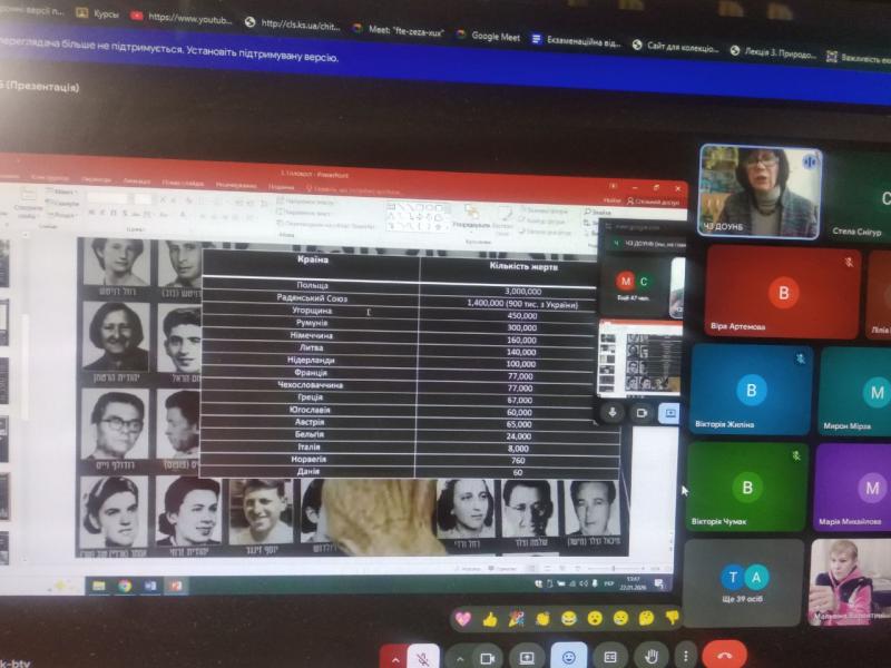 Для студентської молоді у відділі читальних залів відбулась інформ-година за темою «Сила людської пам’яті», присвячена Міжнародному дню пам’яті жертв Голокосту. Учасники заходу багато дізнались про історичні факти того часу. Бо в світі є дати, про які не можливо промовчати і які мають історію жорстокості, варварства, брехні світового рівня. І це дата 27 січня! Саме в цей день у 1945 році війська 1-го Українського фронту увійшли до нацистського табору смерті Аушвіц-Біркенау на території Польщі. Цей табір став у сучасному світі символом нацистських злочинів.Таки «Акції зачисток», які проводили айнзатцгрупи після вступу німецьких військ, першими на території України відбулися на Галичині та в інших населених пунктах країни. Також були згадані люди українці, які рятували євреїв різного віку від переслідування німців. Тож людська пам'ять має велику силу і в цьому допомагають документальні джерела, які зберігається в фондах бібліотеки.