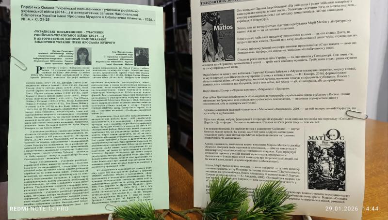 У відділі читальних залів відбулась літературна година за темою ««У пошуках минулого: пошуки ідентичності на сторінках українських книг». Для обговорення були представлені різні джерела, які пов’язані з історією України і які допоможуть зацікавленому читачеві краще зрозуміти «Що таке українська ідентичність і її витоки». Це і художня література «Історія України очима письменників» , також книги з культурології, про українську цивілізацію і шляхи її розвитку, розуміння про секрети українського щастя, а також науково-популярне видання в жанрі альтернативної історії, що простежує різні варіанти і шляхи, якими могла би піти історія держави, якби не зазнала карколомних випадковостей, що впливали на розвиток та становлення України. Тому кожний автор будь-то історик, письменник або журналіст змогли донести до читача цікаву історичну інформацію.
