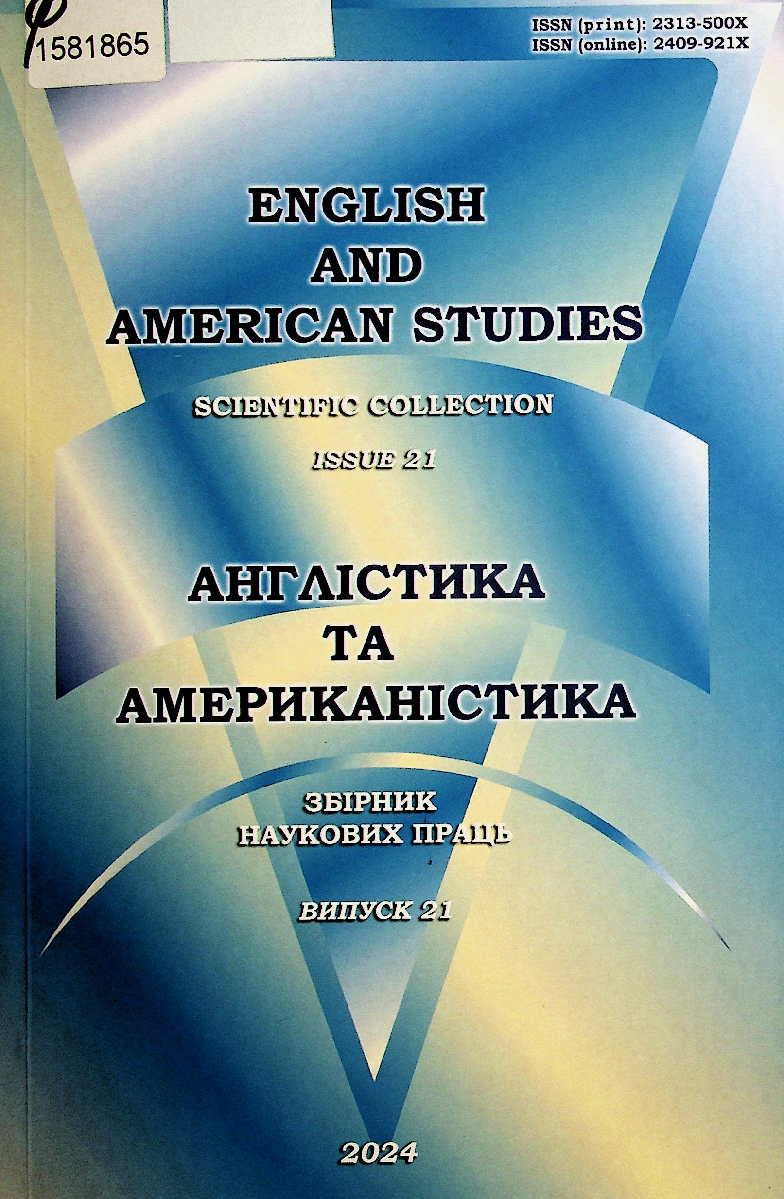 Англістика та американістика : зб. наук. праць. Вип. 21 = English and american studies : scientific collection / Дніпров. нац. ун-т ім. Олеся Гончара ; ред. А. І. Анісімова. - Дніпро : Ліра, 2024. - 134 с.