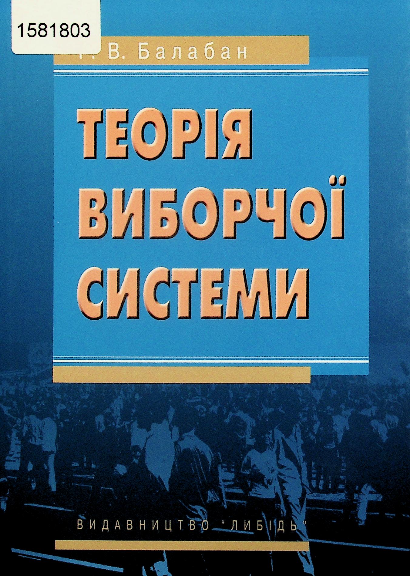 Балабан, Ростислав Валерійович. Теорія виборчої системи : [монографія] / Р. В. Балабан. - Київ : Либідь, 2007. - 112 с.