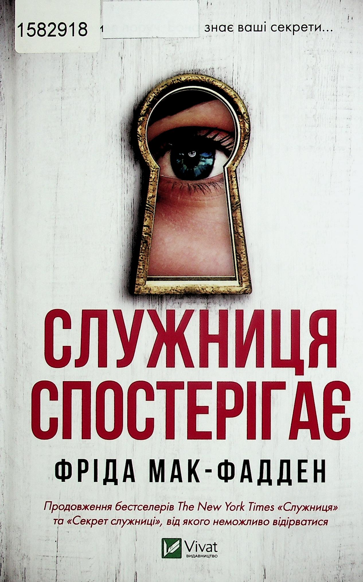 Мак-Фадден, Фріда. Служниця спостерігає = The housemaid is watching : [роман] / Ф. Мак-Фадден ; пер. з англ. А. Федуник. - Харків : Vivat, 2025. - 336 с. - (Художня література)