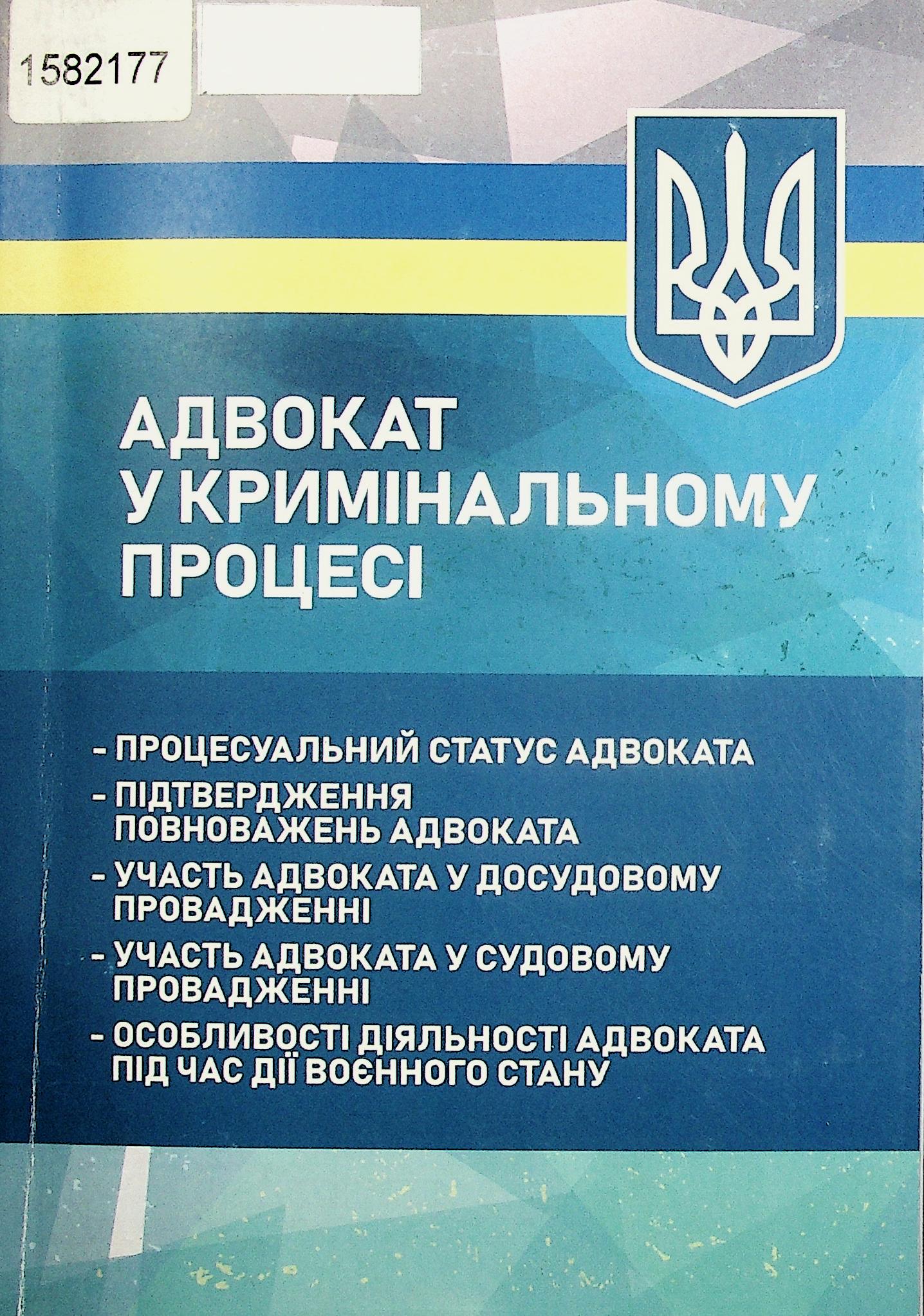 Адвокат у кримінальному процесі / уклад.: О. М. Бандурка, С. С. Вітвіцький, Р. Б. Гараміта [та ін.] ; ред. В. П. Пєтков. - Київ : Професіонал, 2024. - 446 с.