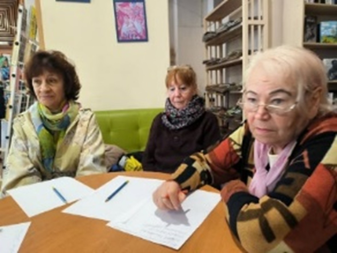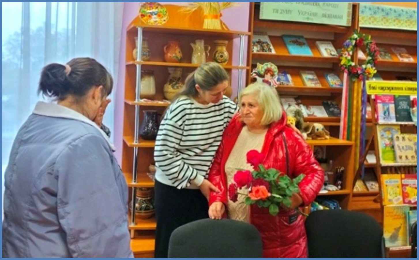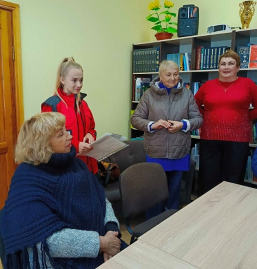 | Члени ГО «Турбота» у бібліотеці Читачі та фахівці бібліотеки зустрілися з членами ГО «Турбота», зустріч присвятили Дню захисників і захисниць України. Обговорювали книжкову виставку «Сила нескорених: Захисники України на сторінках книг». Виставка була створена з метою популяризації літератури і висвітлення матеріалів про історичне минуле та героїчне сьогодення України. Учасники ознайомилися з деякими книгами про сучасну війну, згадали про роль козацтва в історії української держави. Захід відбувся у філії «П’ятихатська міська бібліотека» КЗ «Центр культури і дозвілля» П’ятихатської міської ради (Кам’янський район). вул. Олександрійська, 65, м. П’ятихатки, Кам’янський район, 52100. https://www.libr.dp.ua/?do=dnipro&idp=1038