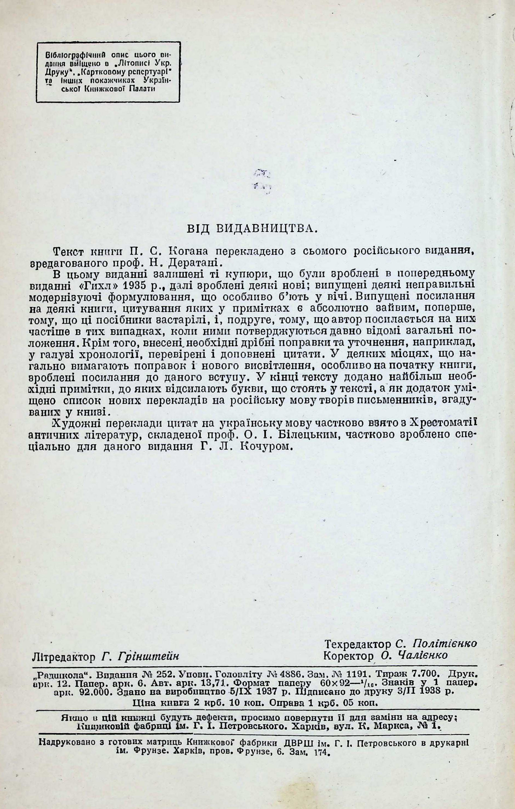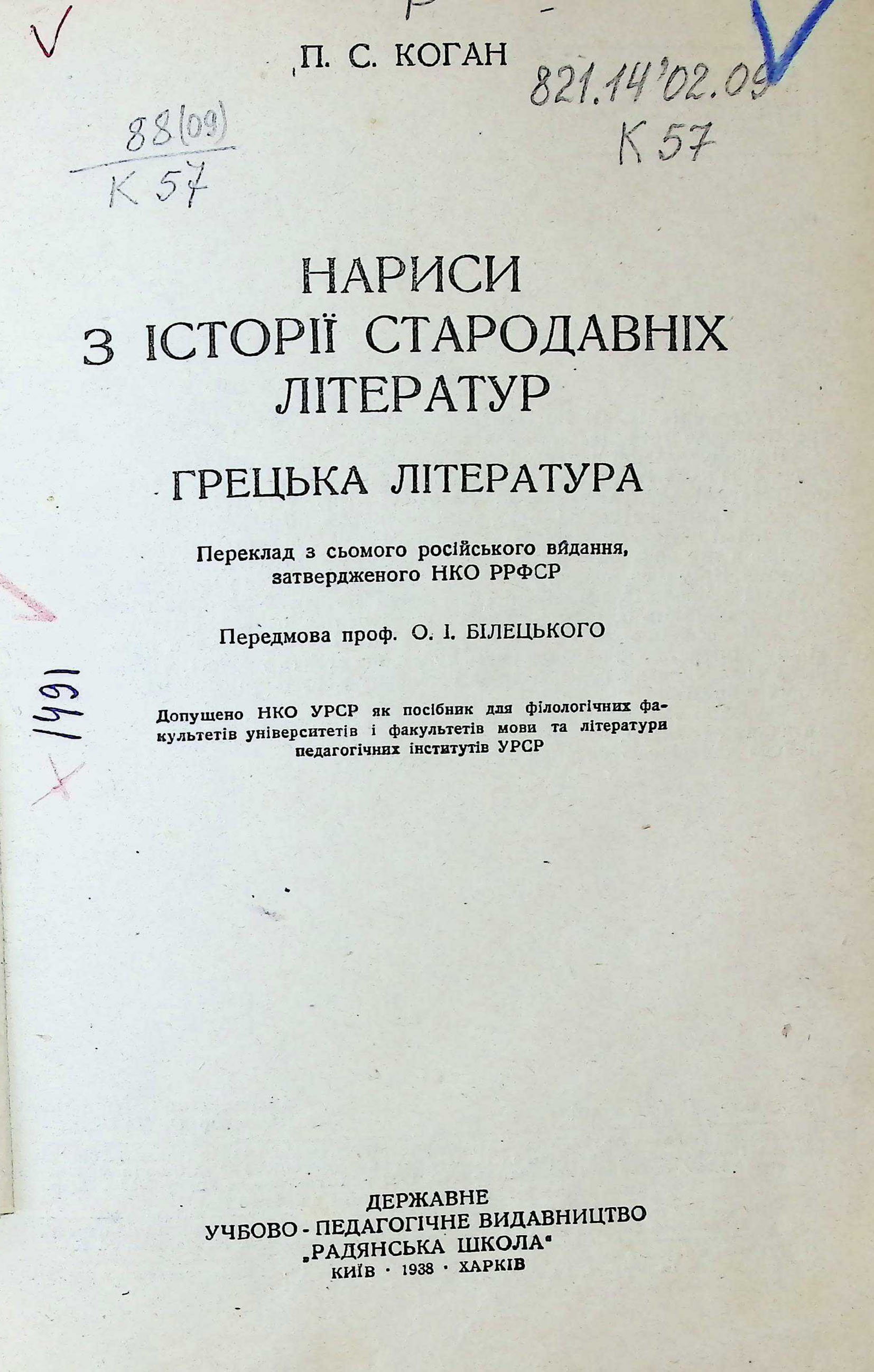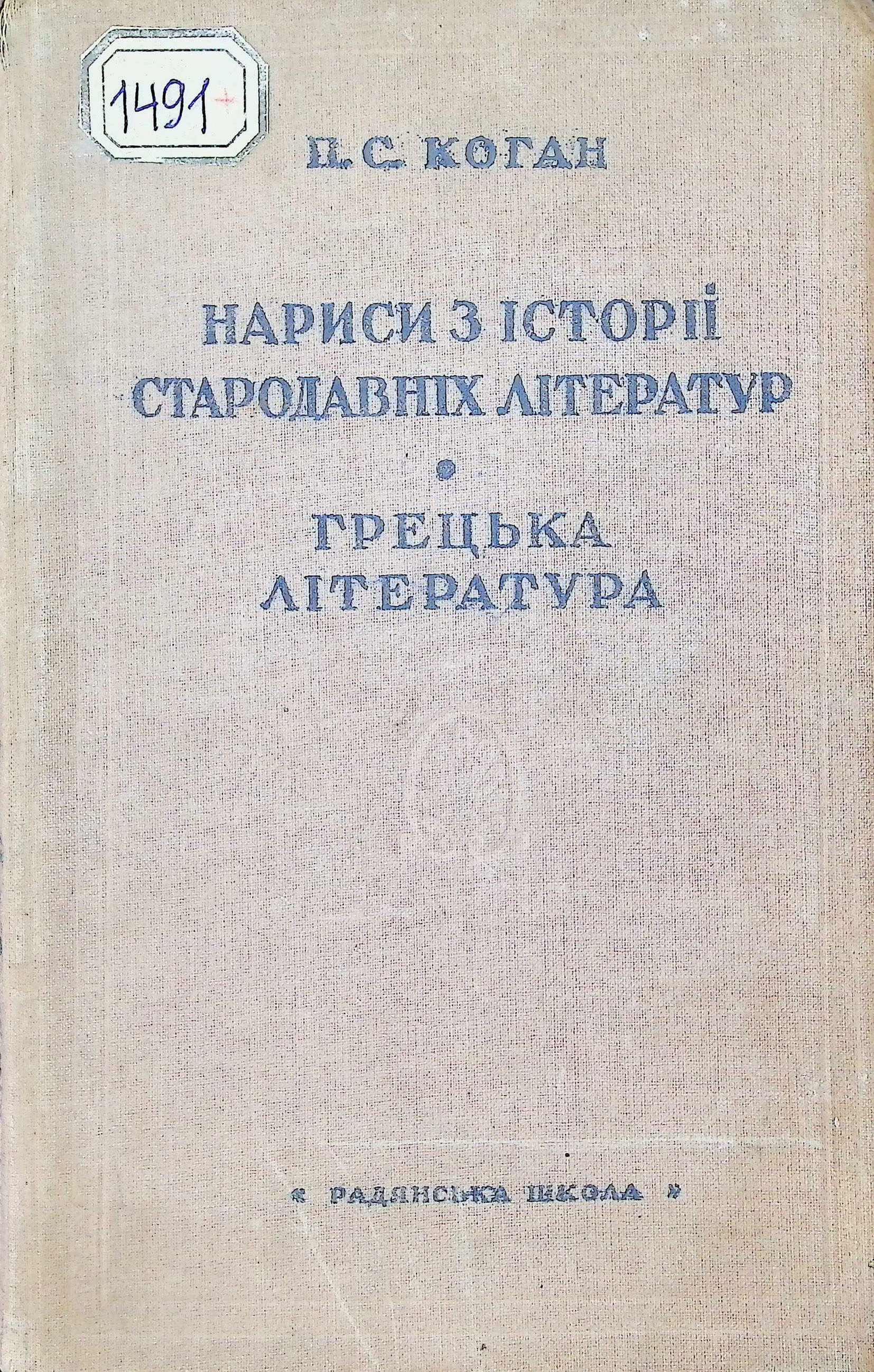 П.С. КОГАН. НАРИСИ З ІСТОРІЇ СТАРОДАВНІХ ЛІТЕРАТУР. ГРЕЦЬКА ЛІТЕРАТУРА