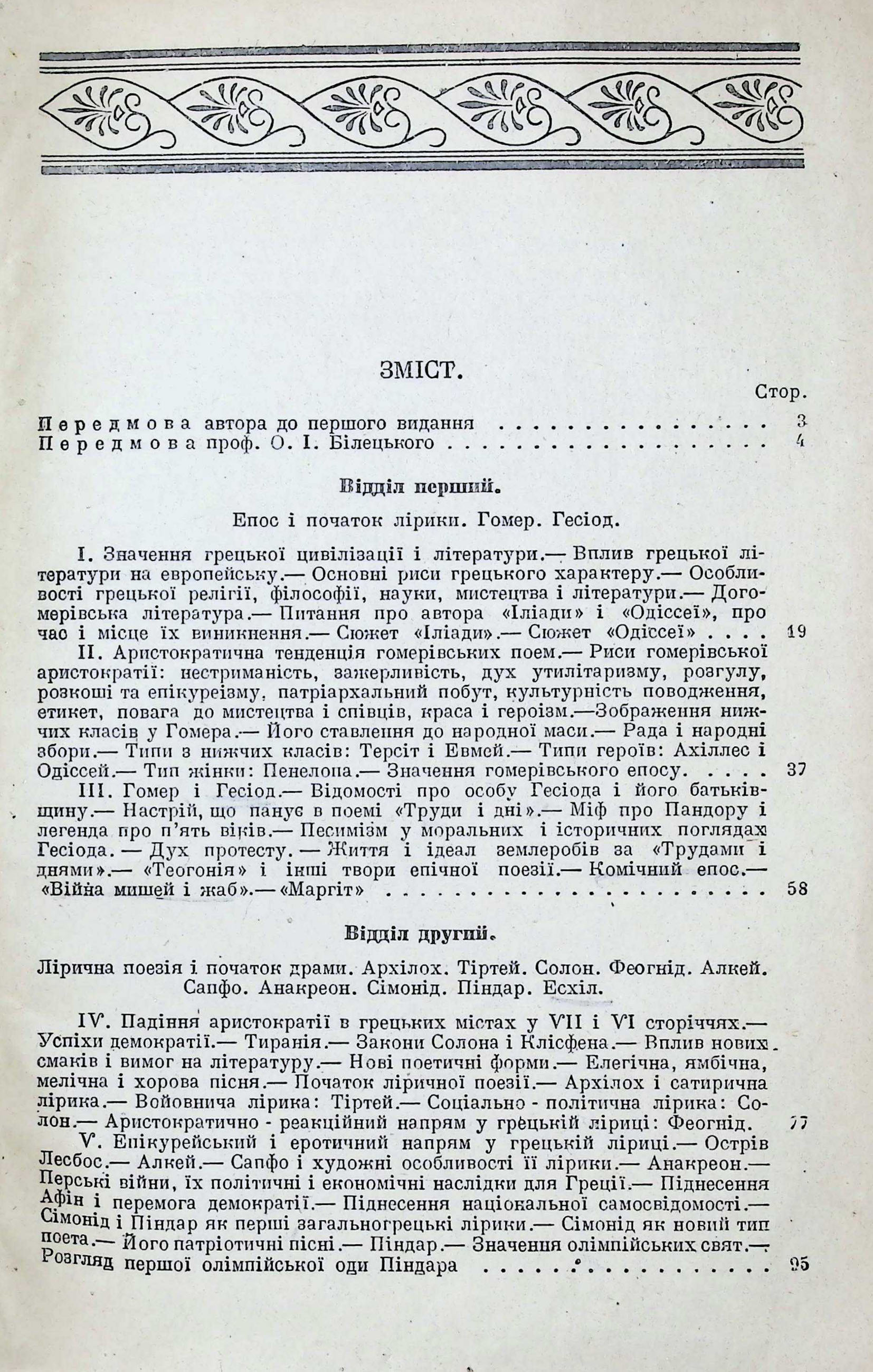 ВІДДІЛ ПЕРШИЙ; ЕПОС І ПОЧАТОК ЛІРИКИ. ГОМЕР, ГЕСІОД