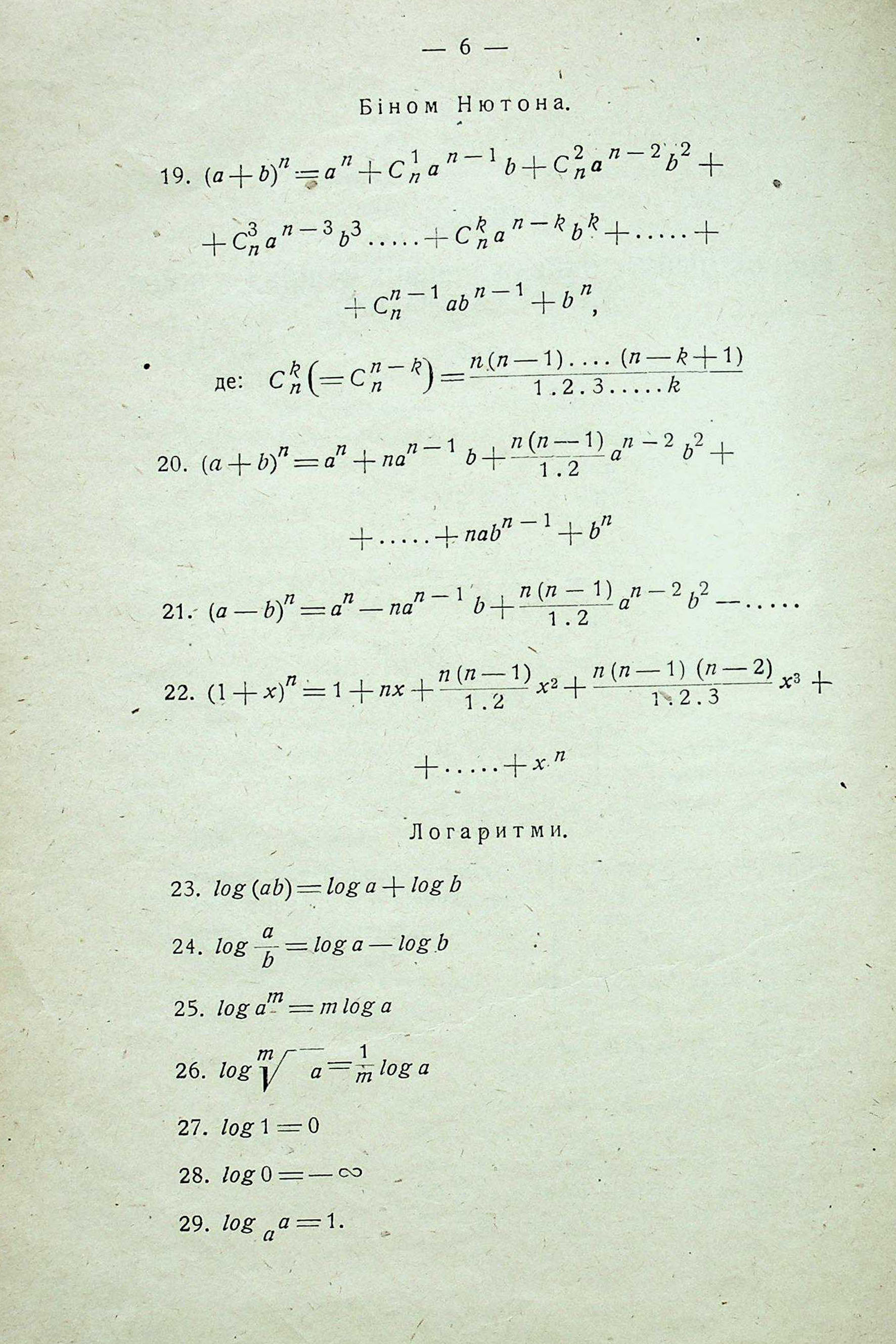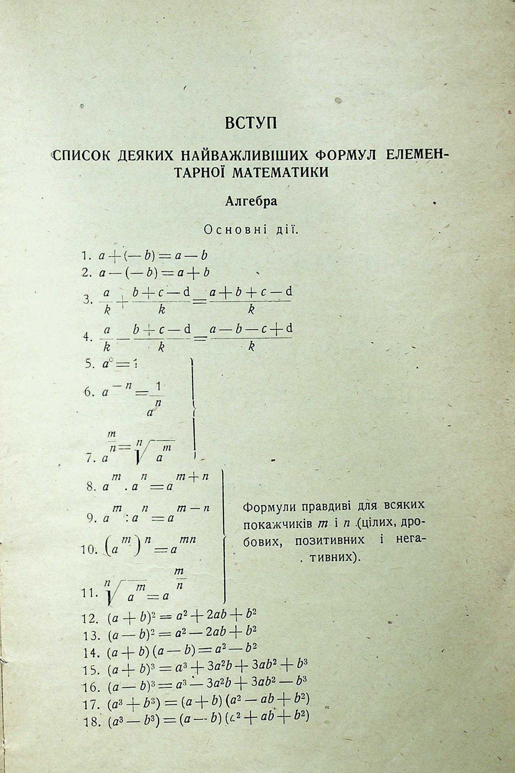 ВСТУП. СПИСОК ДЕЯКИХ НАЙВАЖЛИВІШИХ ФОРМУЛ ЕЛЕМЕНТАРНОЇ МАТЕМАТИКИ