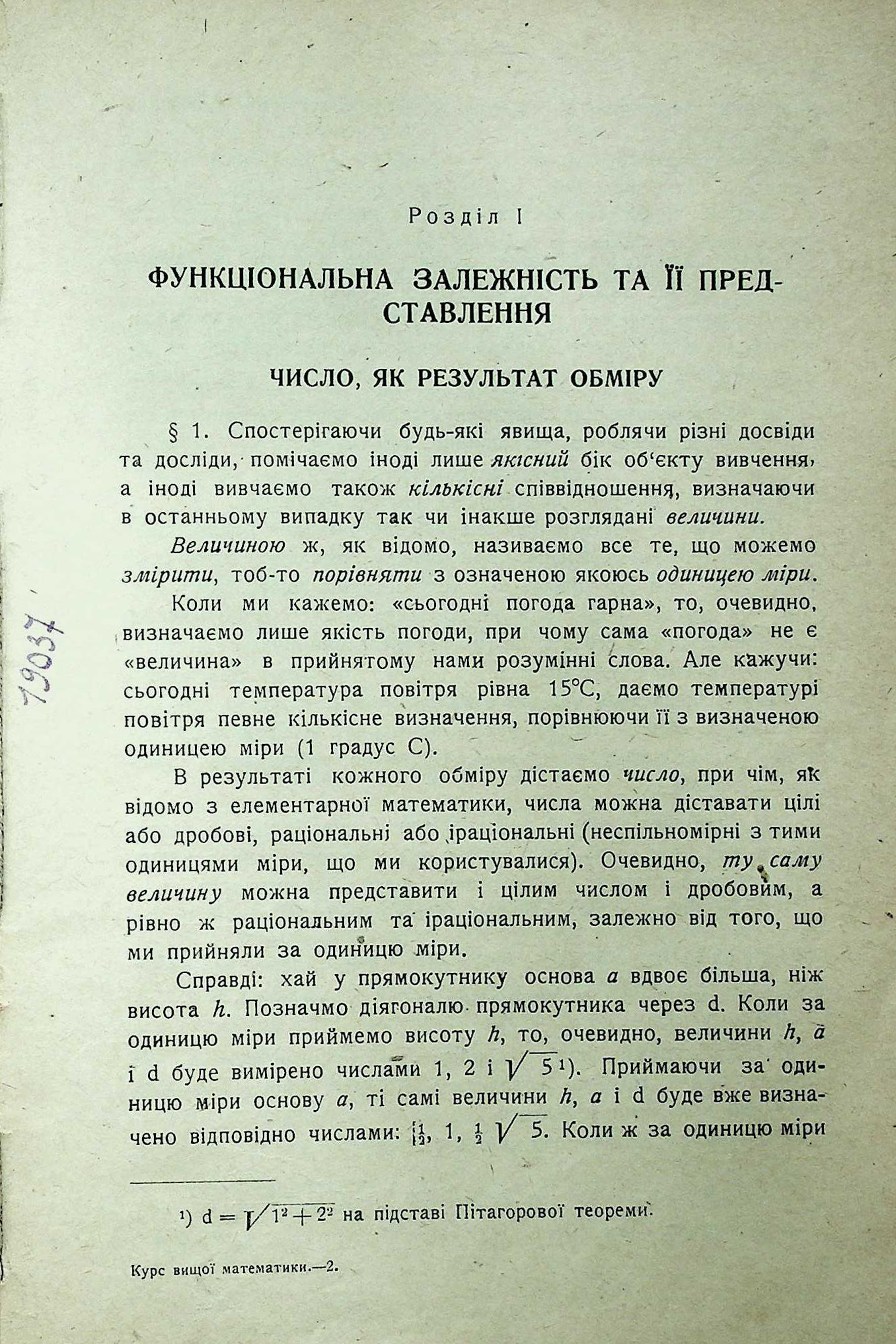 Розділ І. ФУНКЦІОНАЛЬНА ЗАЛЕЖНІСТЬ ТА ІЇ ПРЕДСТАВЛЕННЯ. ЧИСЛО, ЯК РЕЗУЛЬТАТ ОБМІРУ