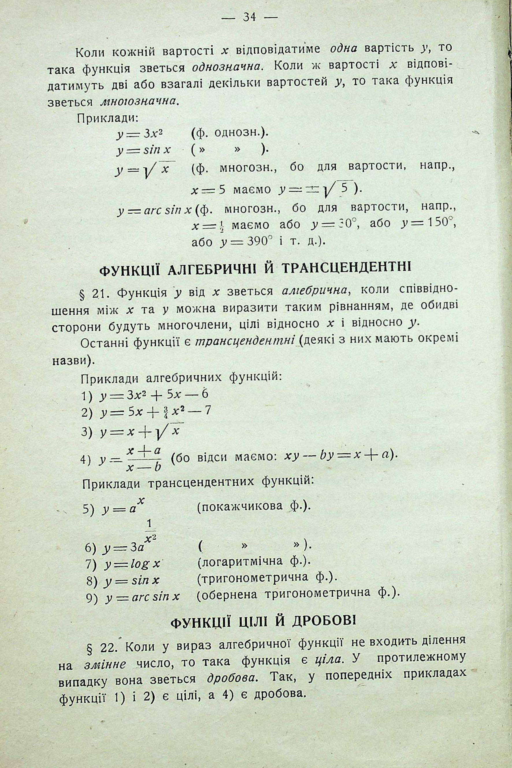ФУНКЦІЇ АЛГЕБРИЧНІ Й ТРАНСЦЕНДЕНТНІ