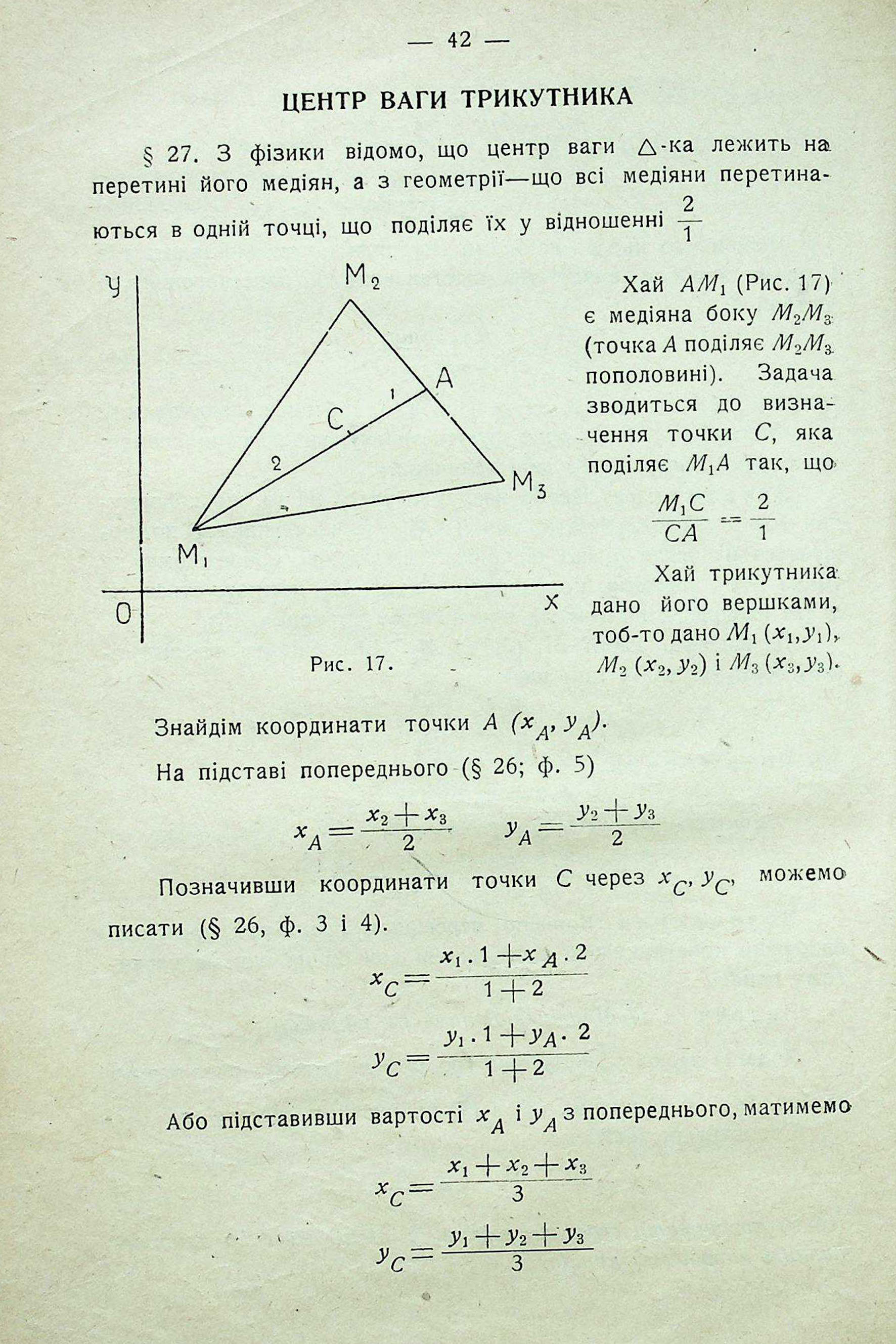 ЦЕНТР ВАГИ ТРИКУТНИКА