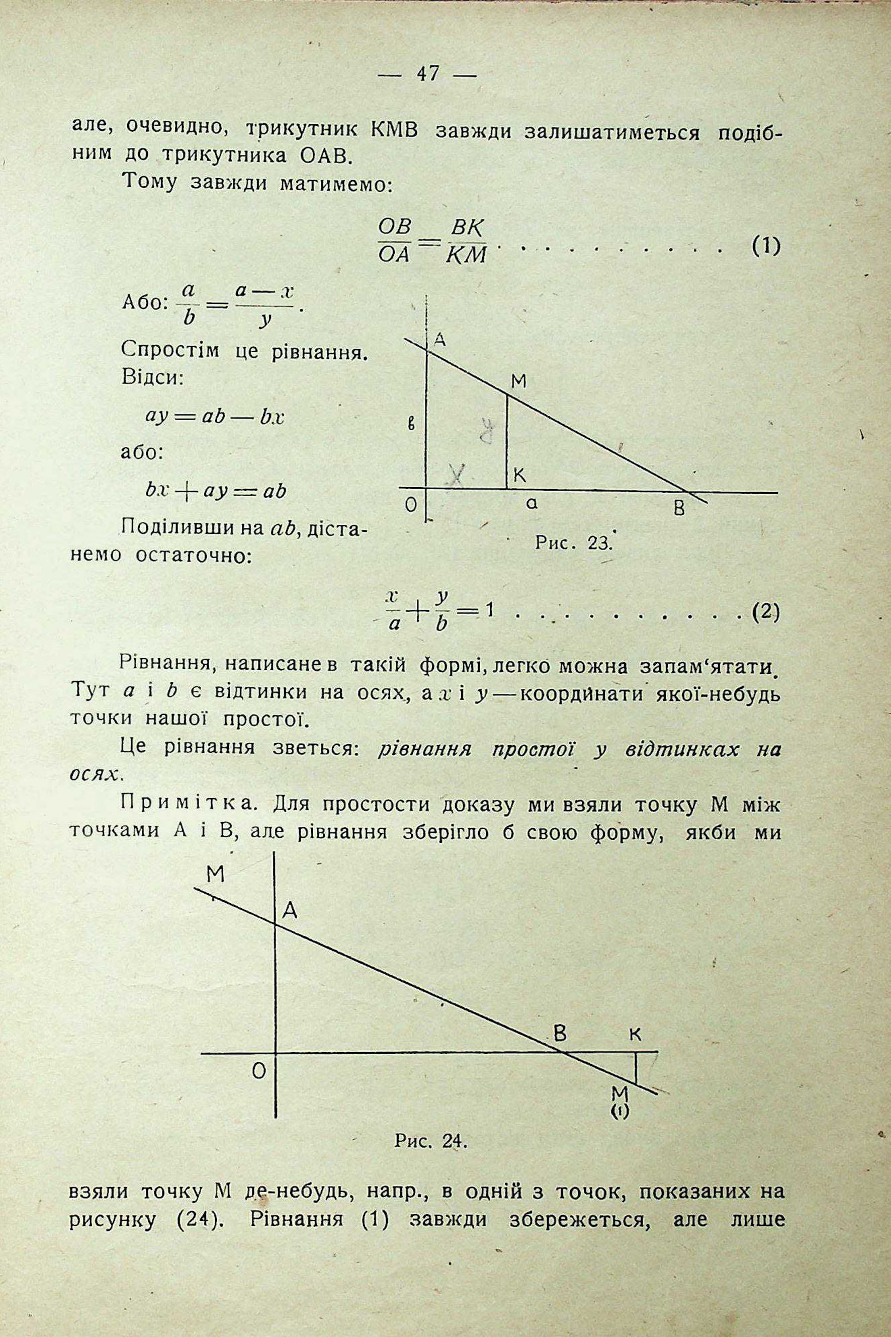 ВИЗНАЧЕННЯ ПОЛОЖЕННЯ ПРОСТОЇ. РІВНАННЯ ПРОСТОЇ У ВІДТИНКАХ НА ОСЯХ