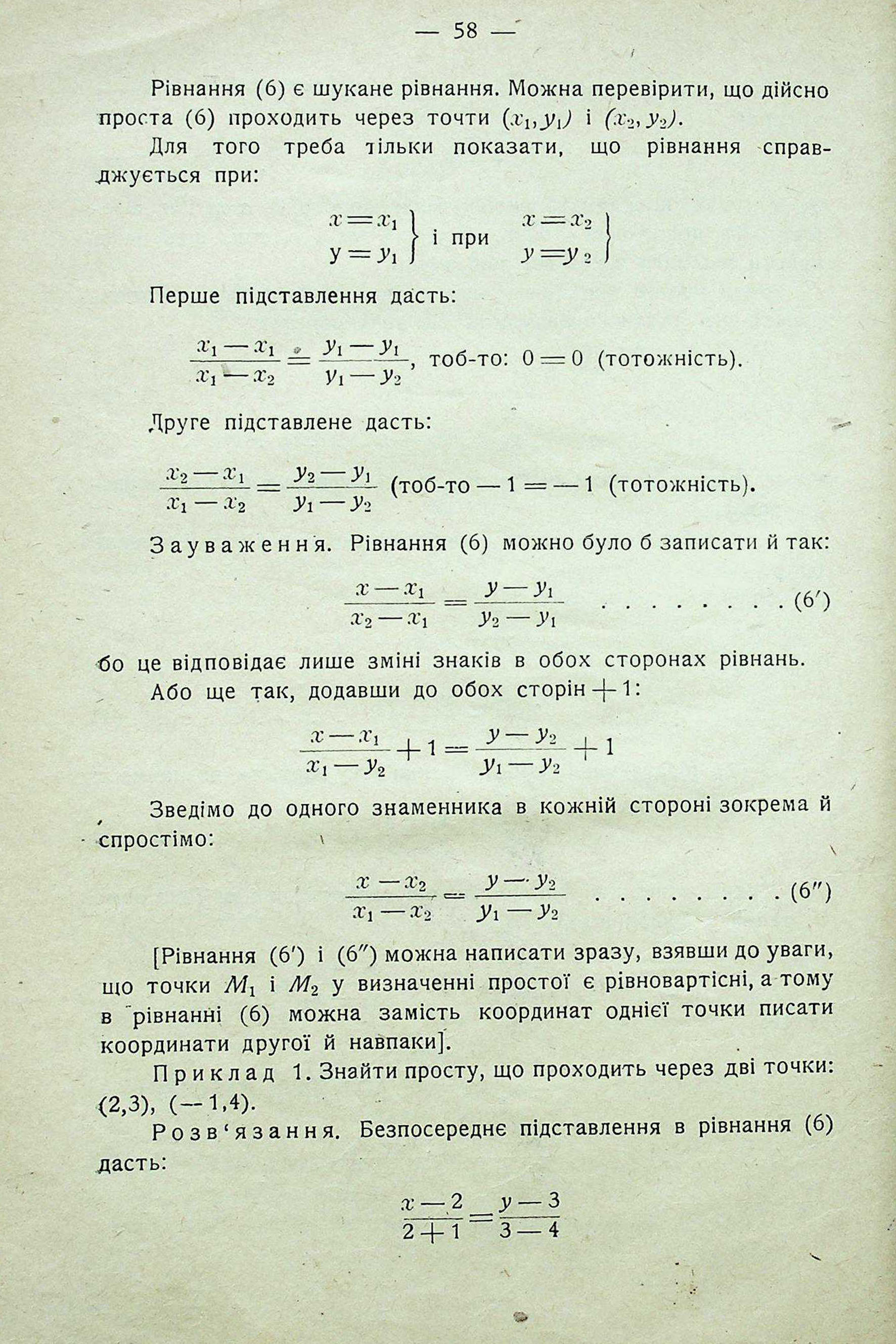 РІВНАННЯ ПРОСТОЇ, ЩО ПРОХОДИТЬ ЧЕРЕЗ ДВІ ДАНІ ТОЧКИ