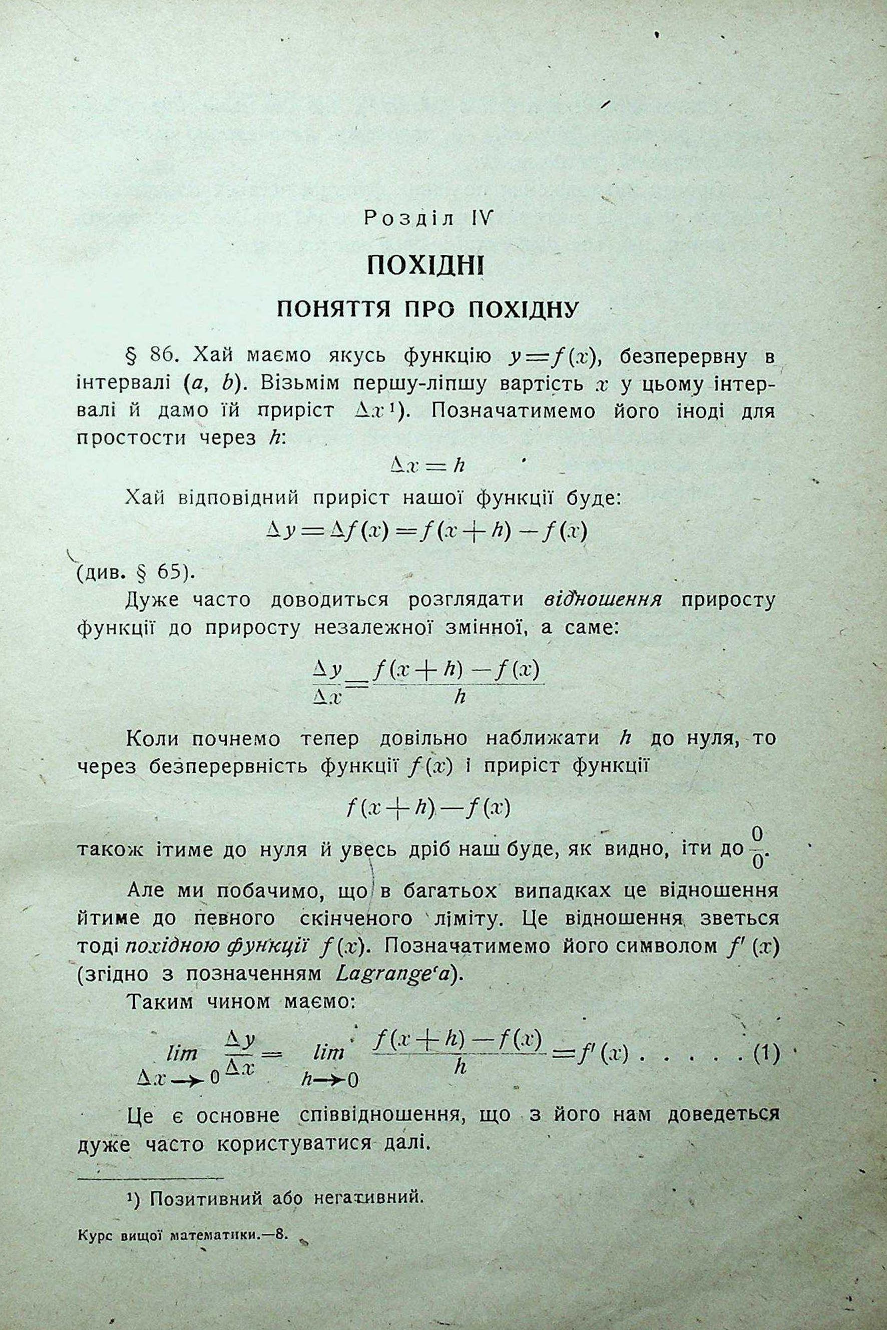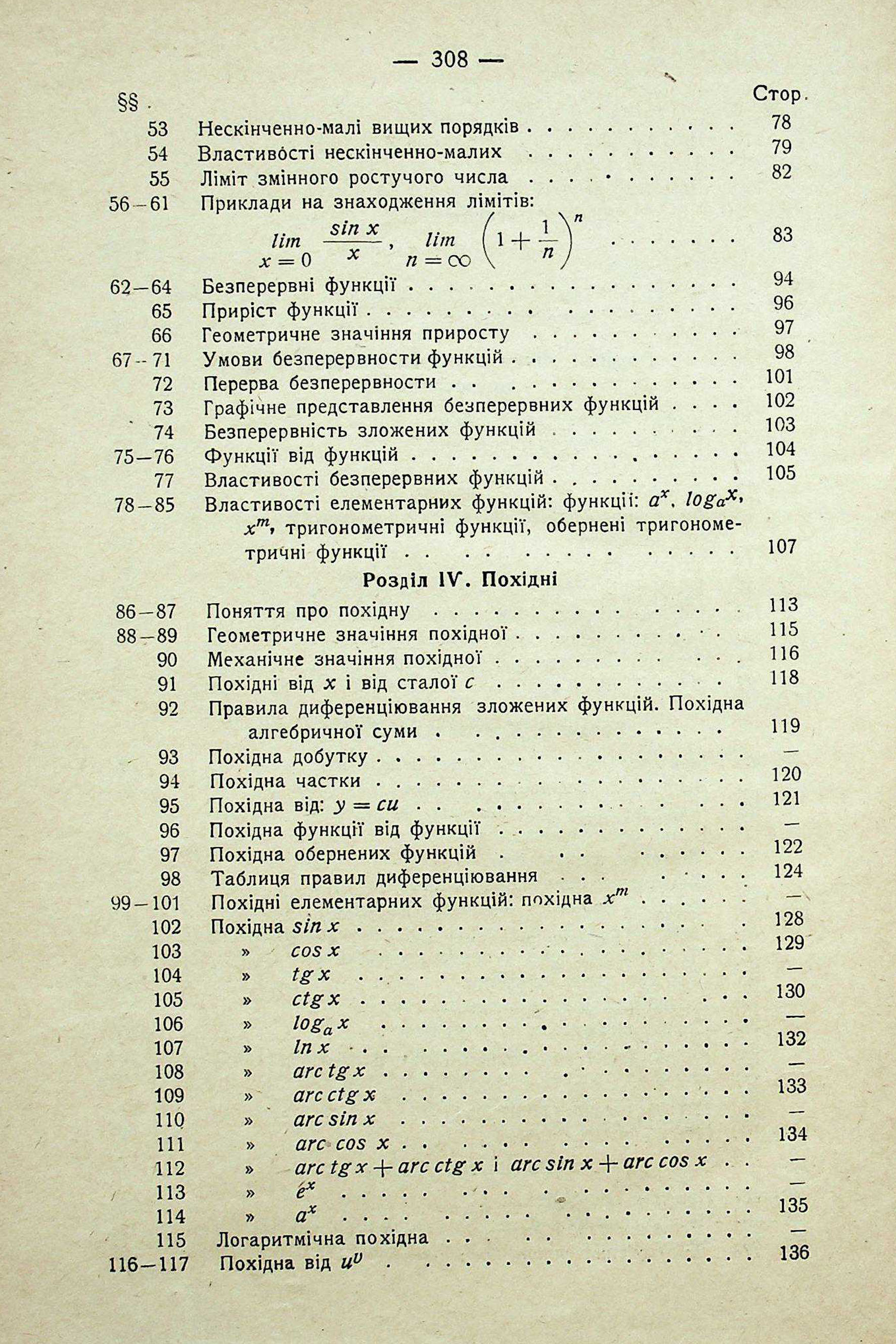 РОЗДІЛ ІІІ. ЛІМІТИ. РОЗДІЛ IV. ПОХІДНІ