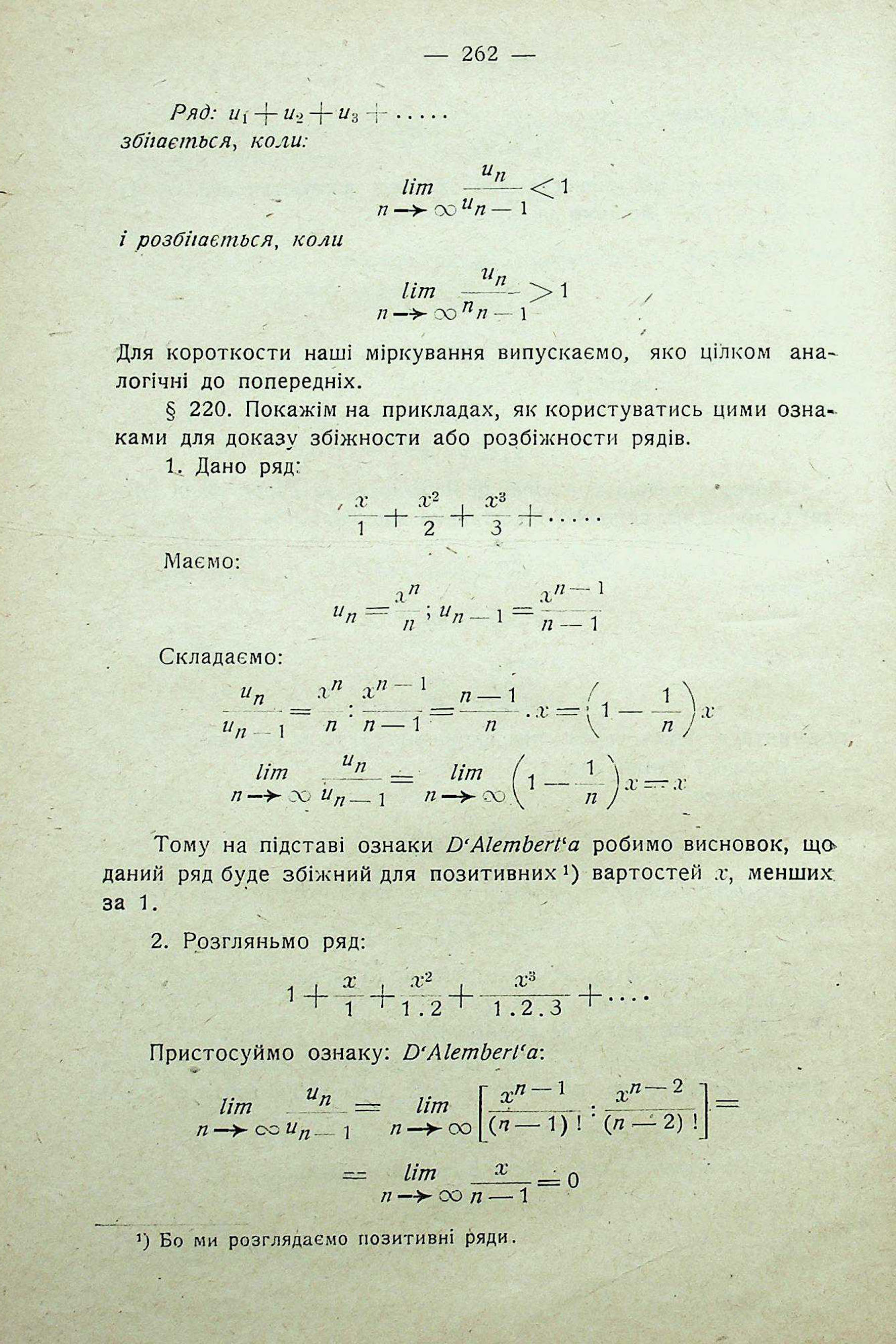 ОЗНАКИ ЗБІЖНОСТИ ПОЗИТИВНИХ РЯДІВ