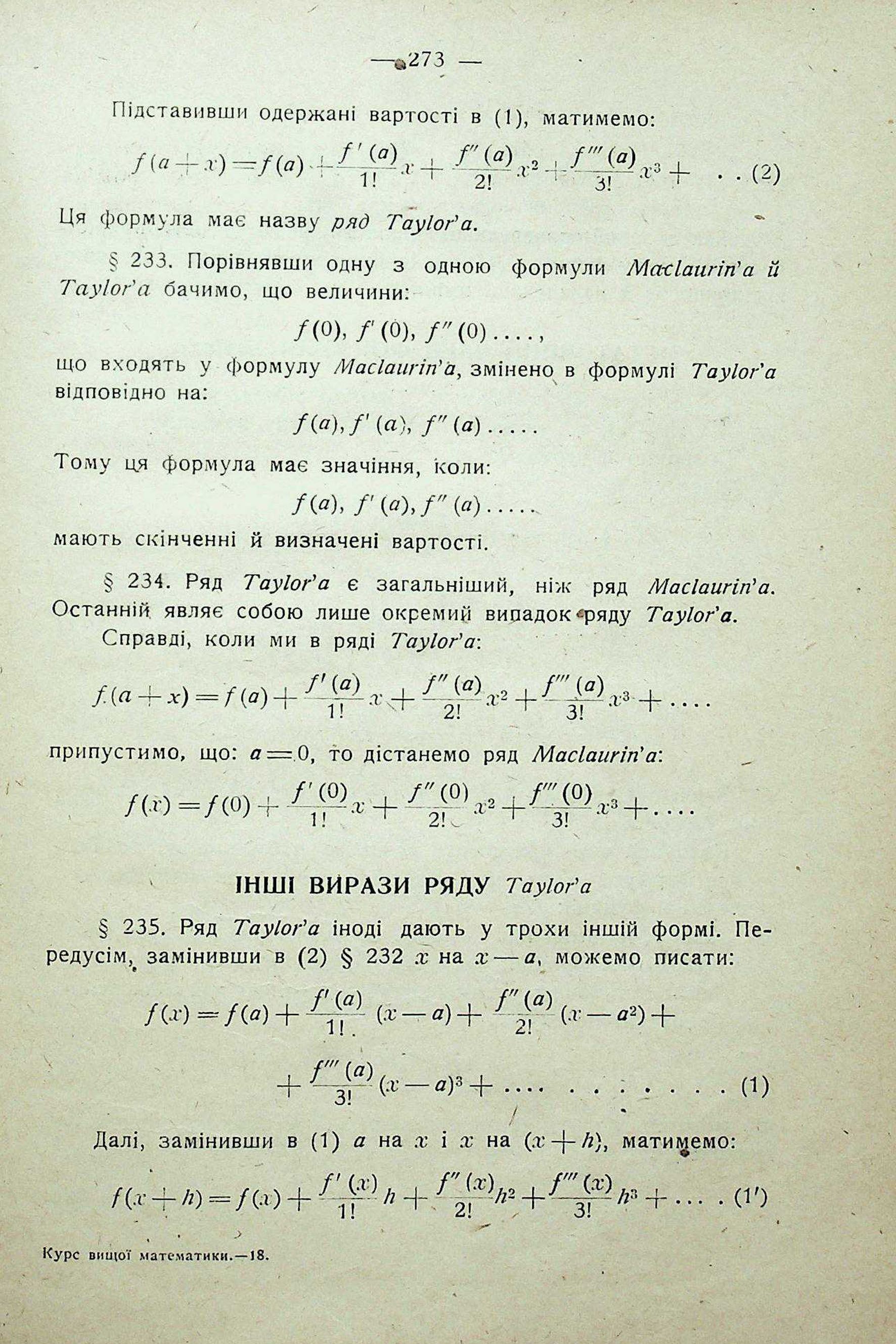 ІНШІ ВИРАЗИ РЯДУ Тауіог'а