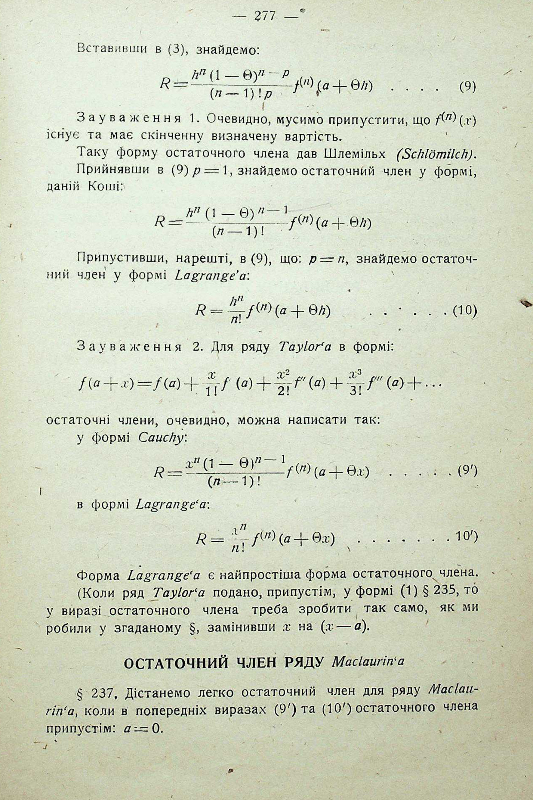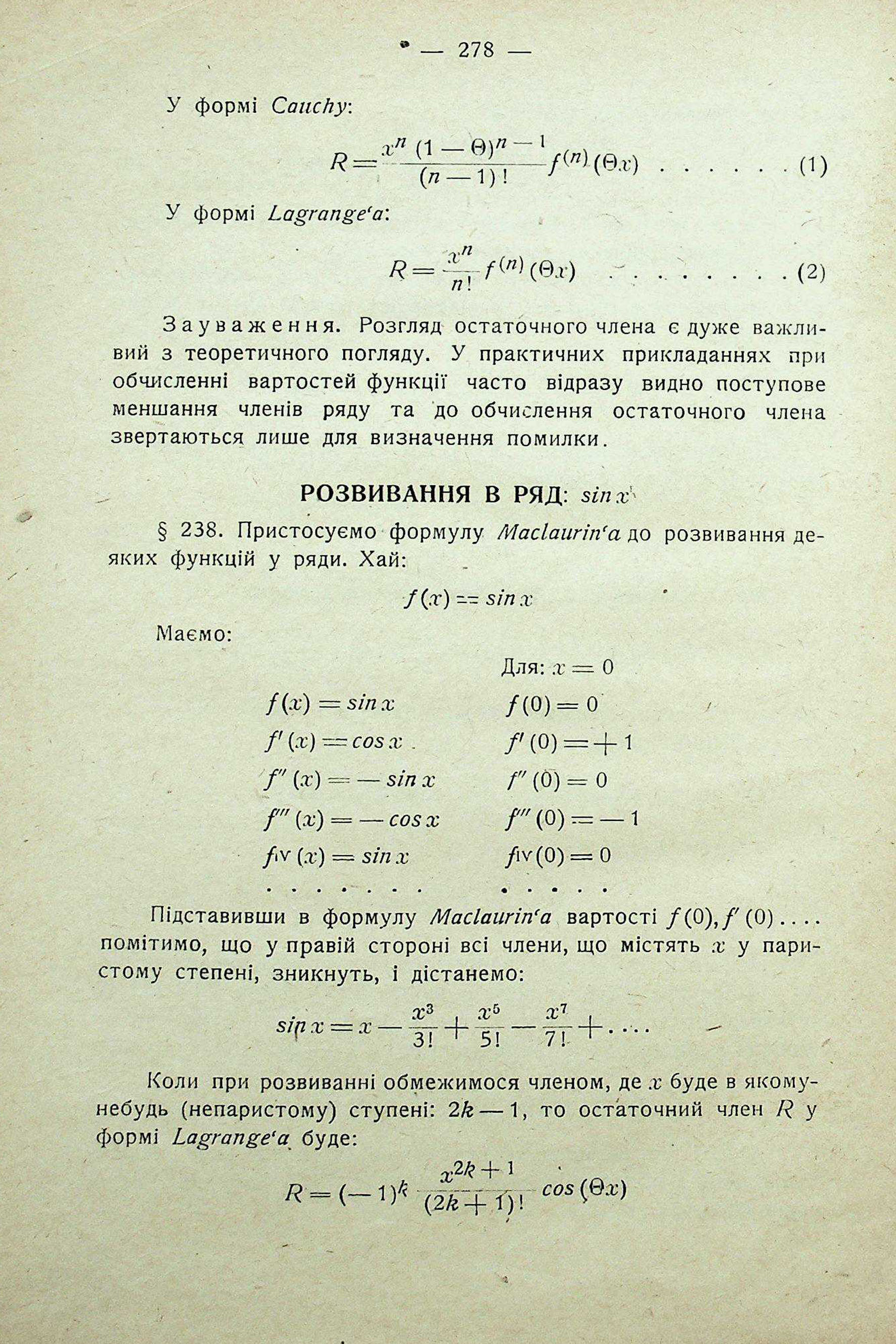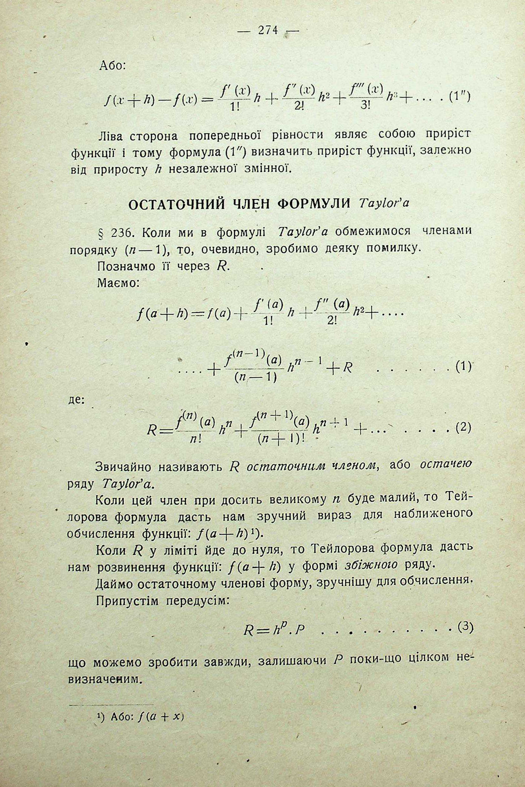 ОСТАТОЧНИЙ ЧЛЕН ФОРМУЛИ Taylor'а