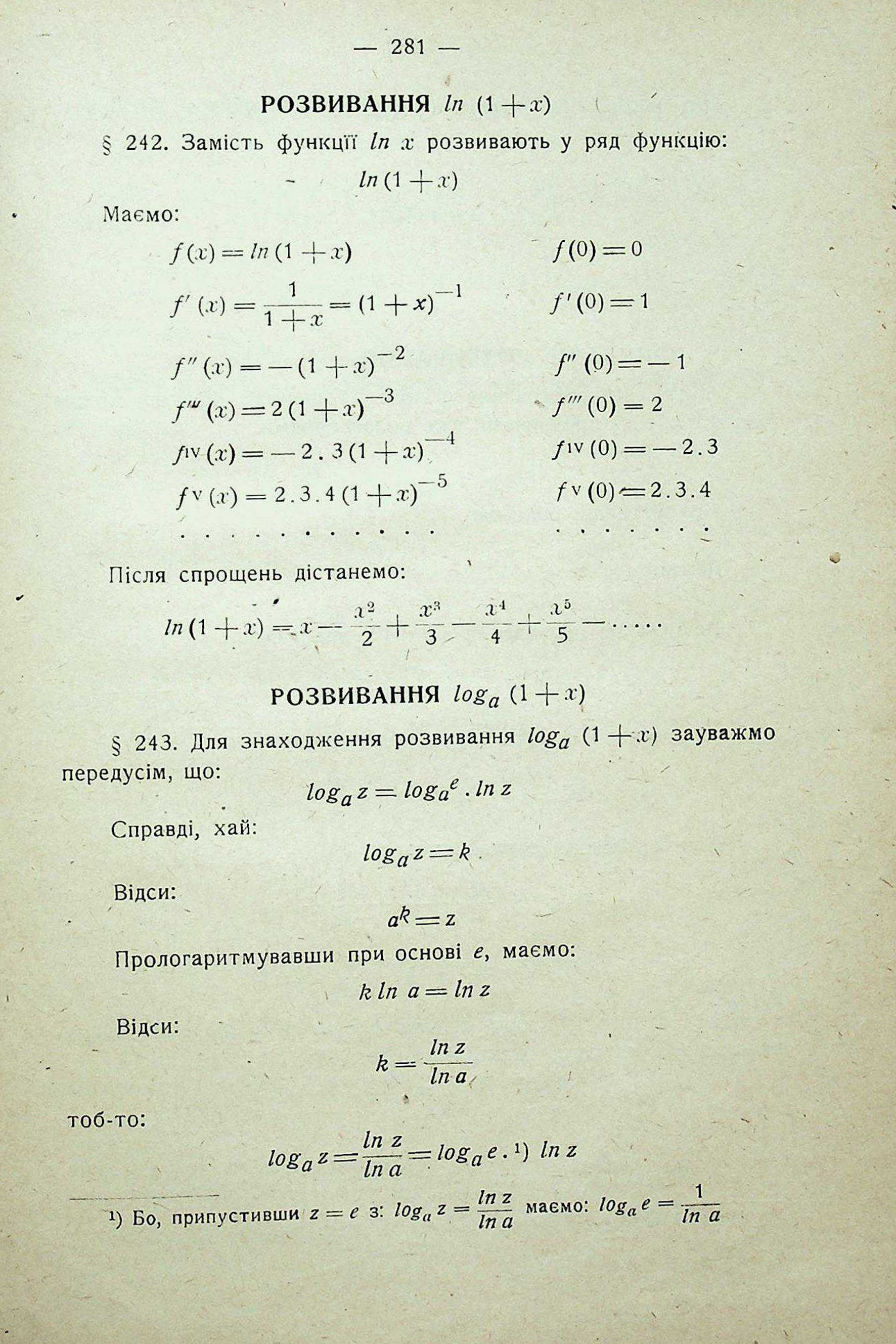 РОЗВИВАННЯ In (1 + а:). РОЗВИВАННЯ log а (1+x)