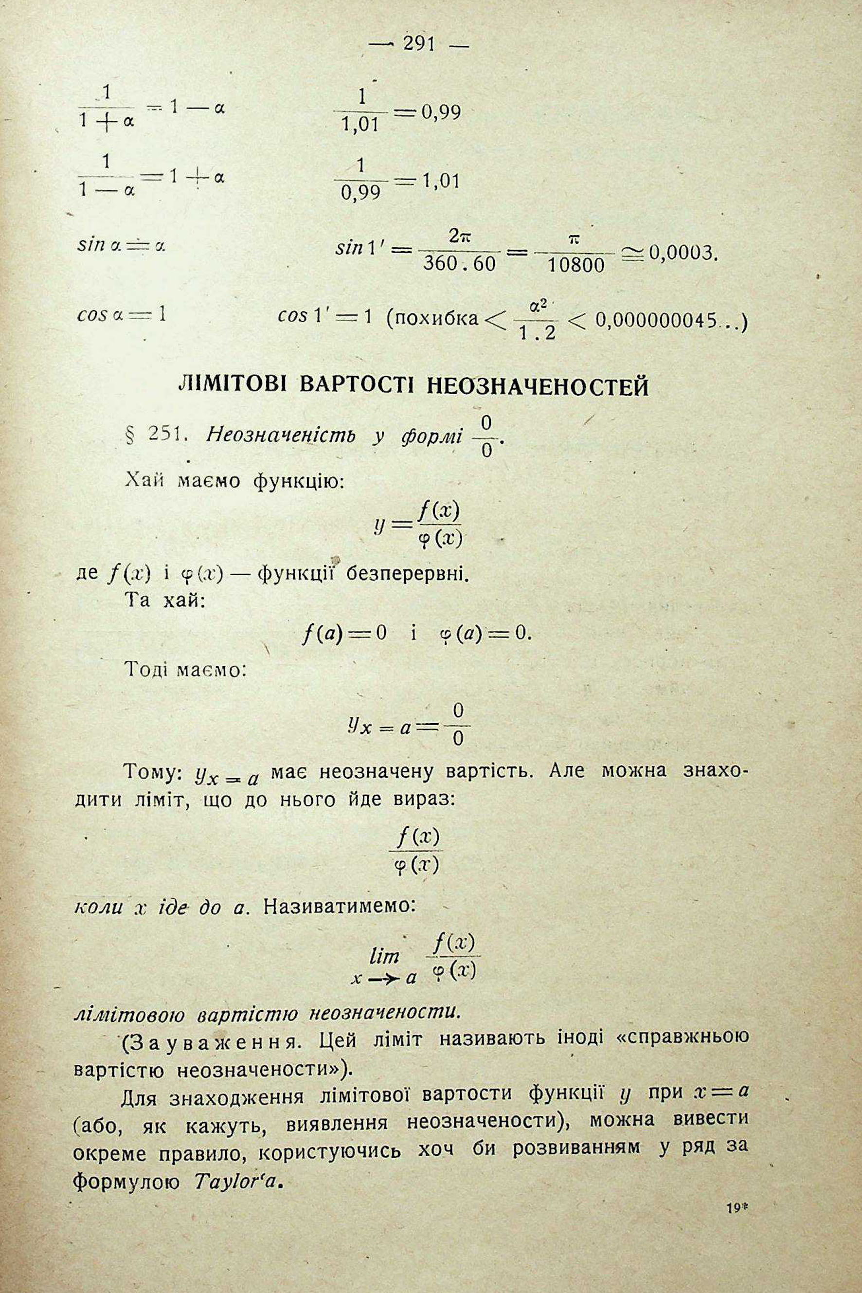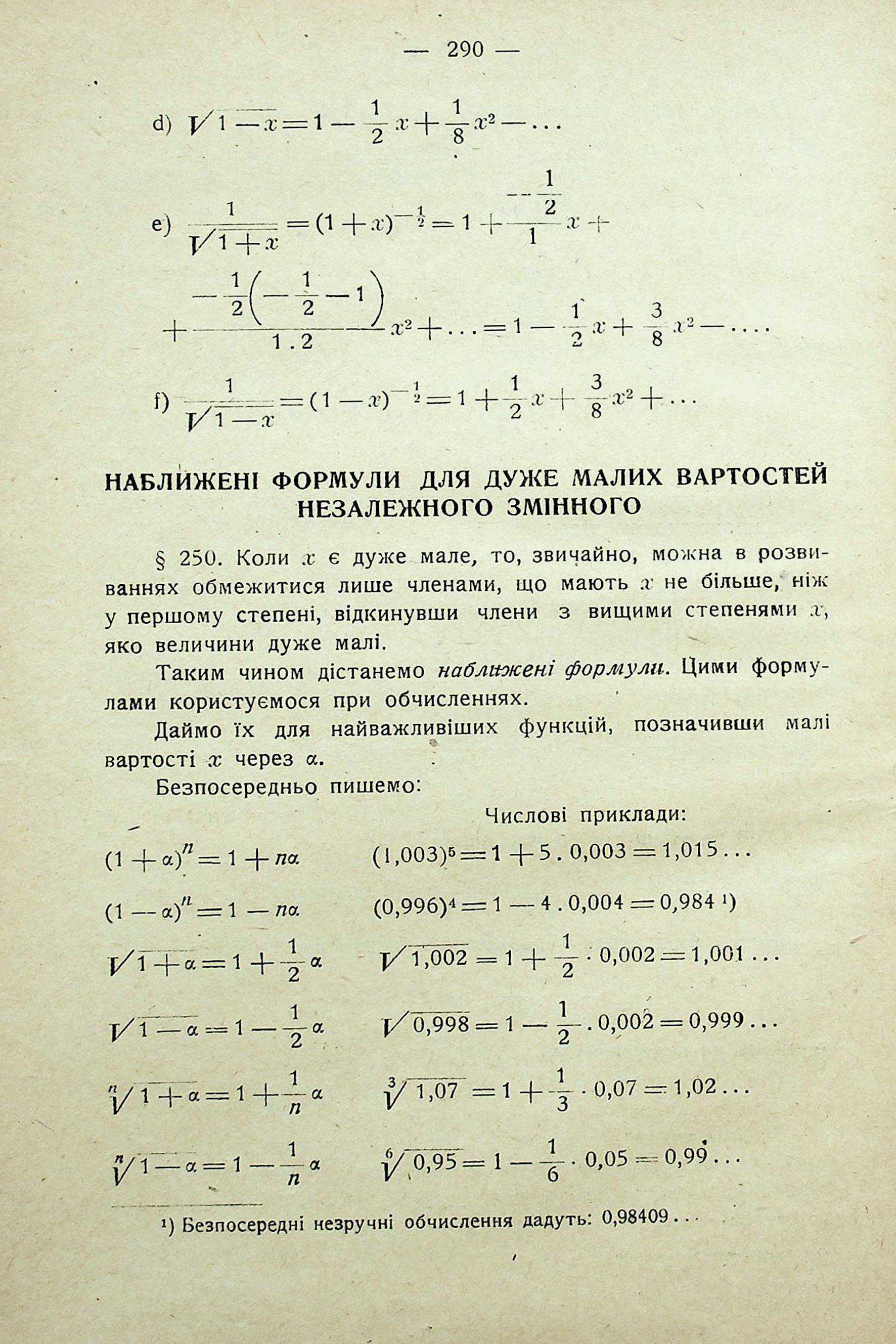 НАБЛИЖЕНІ ФОРМУЛИ ДЛЯ ДУЖЕ МАЛИХ ВАРТОСТЕЙ НЕЗАЛЕЖНОГО ЗМІННОГО
