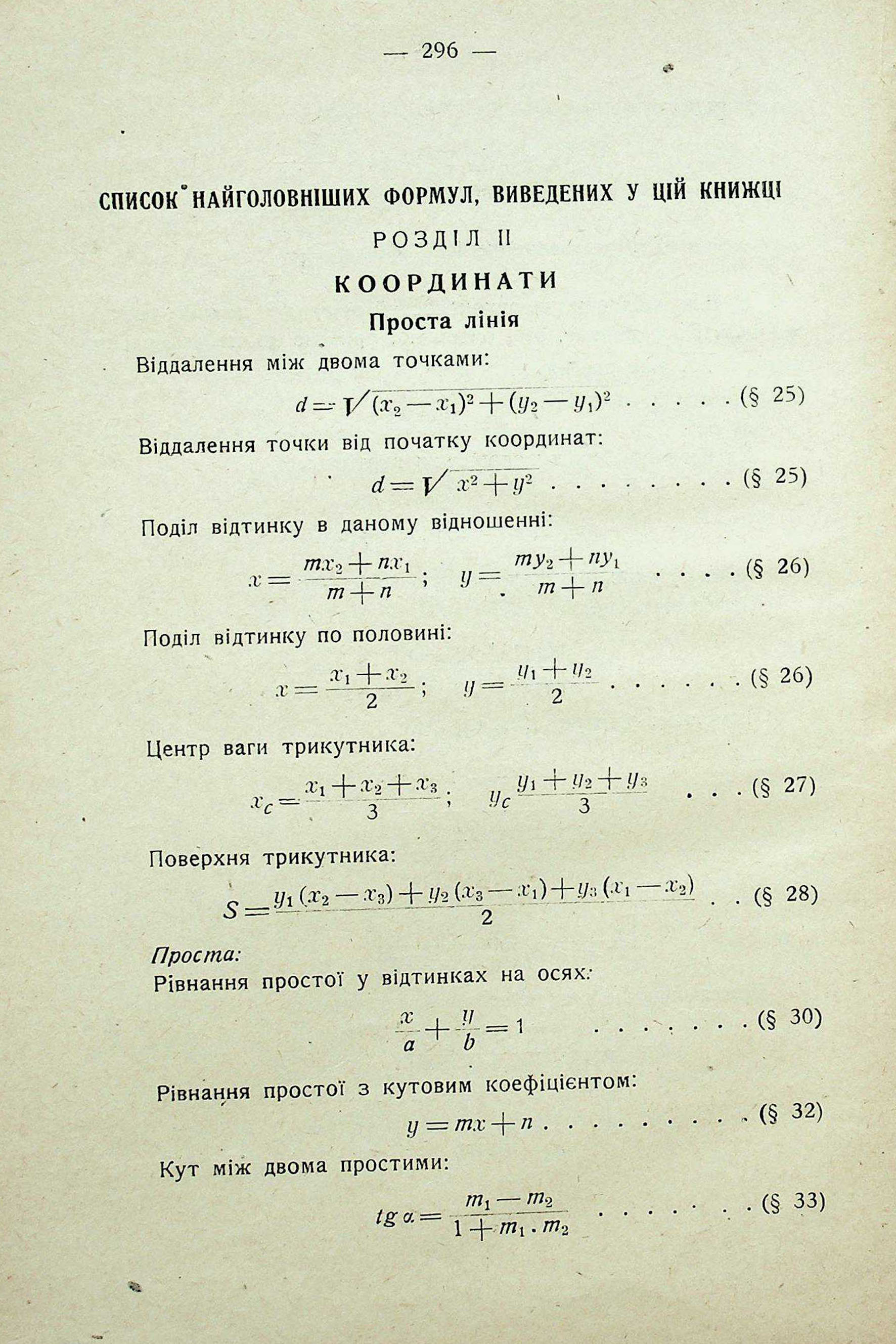 СПИСОК НАЙГОЛОВНІШИХ ФОРМУЛ, ВИВЕДЕНИХ У ЦІЙ КНИЖЦІ РОЗДІЛ II КООРДИНАТИ