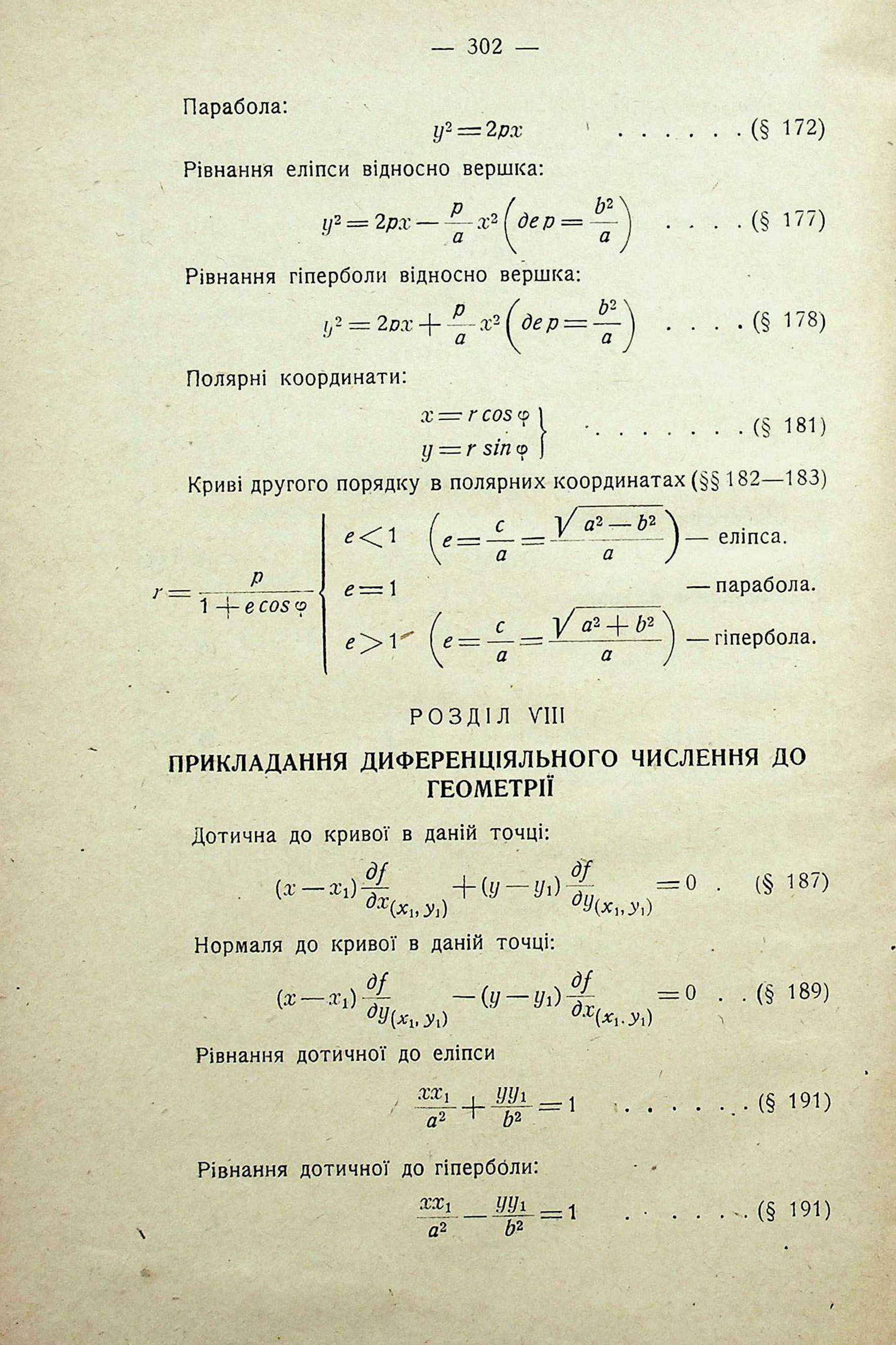 РОЗДІЛ VIII.ПРИКЛАДАННЯ ДИФЕРЕНЦІЯЛЬНОГО ЧИСЛЕННЯ ДО ГЕОМЕТРІЇ