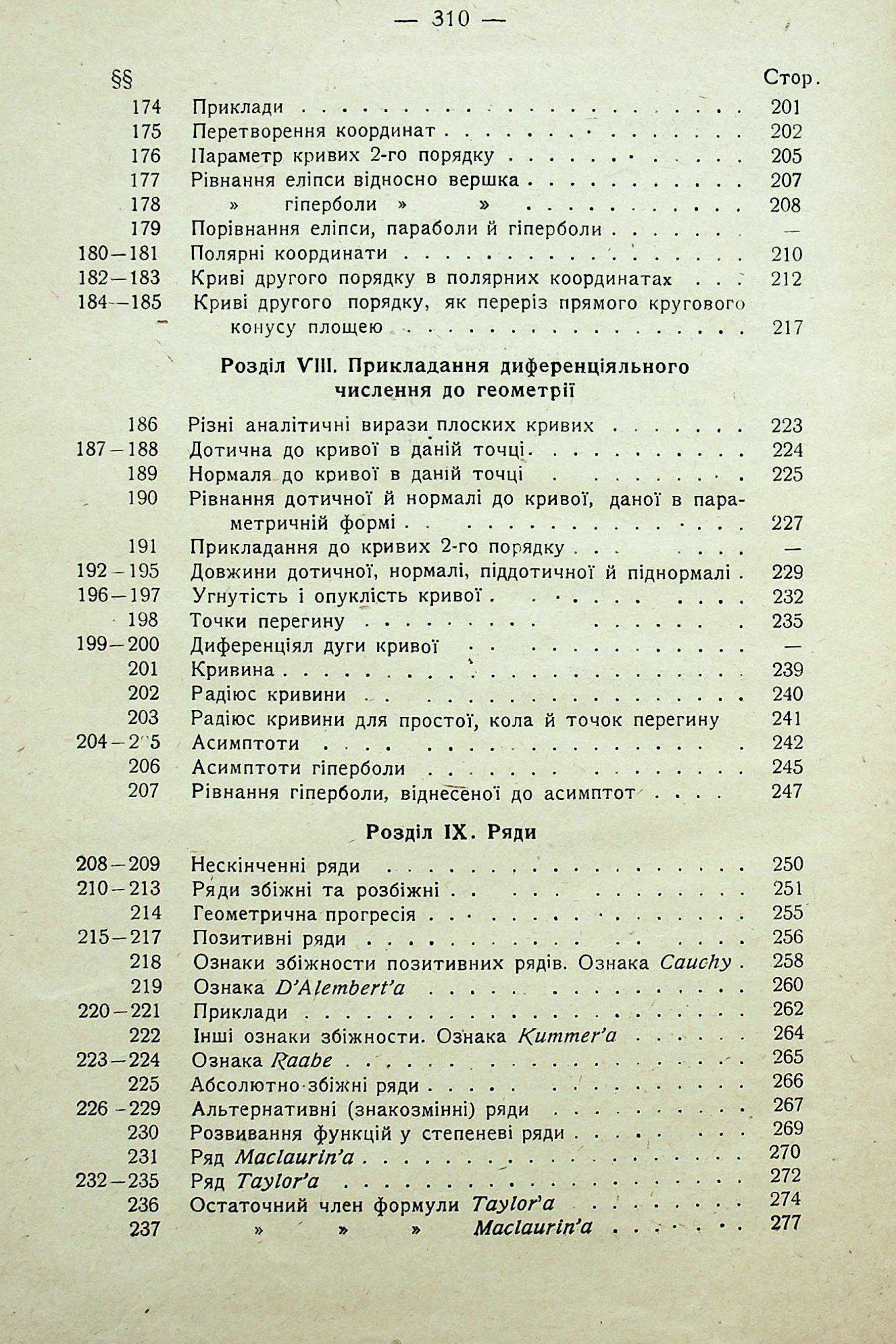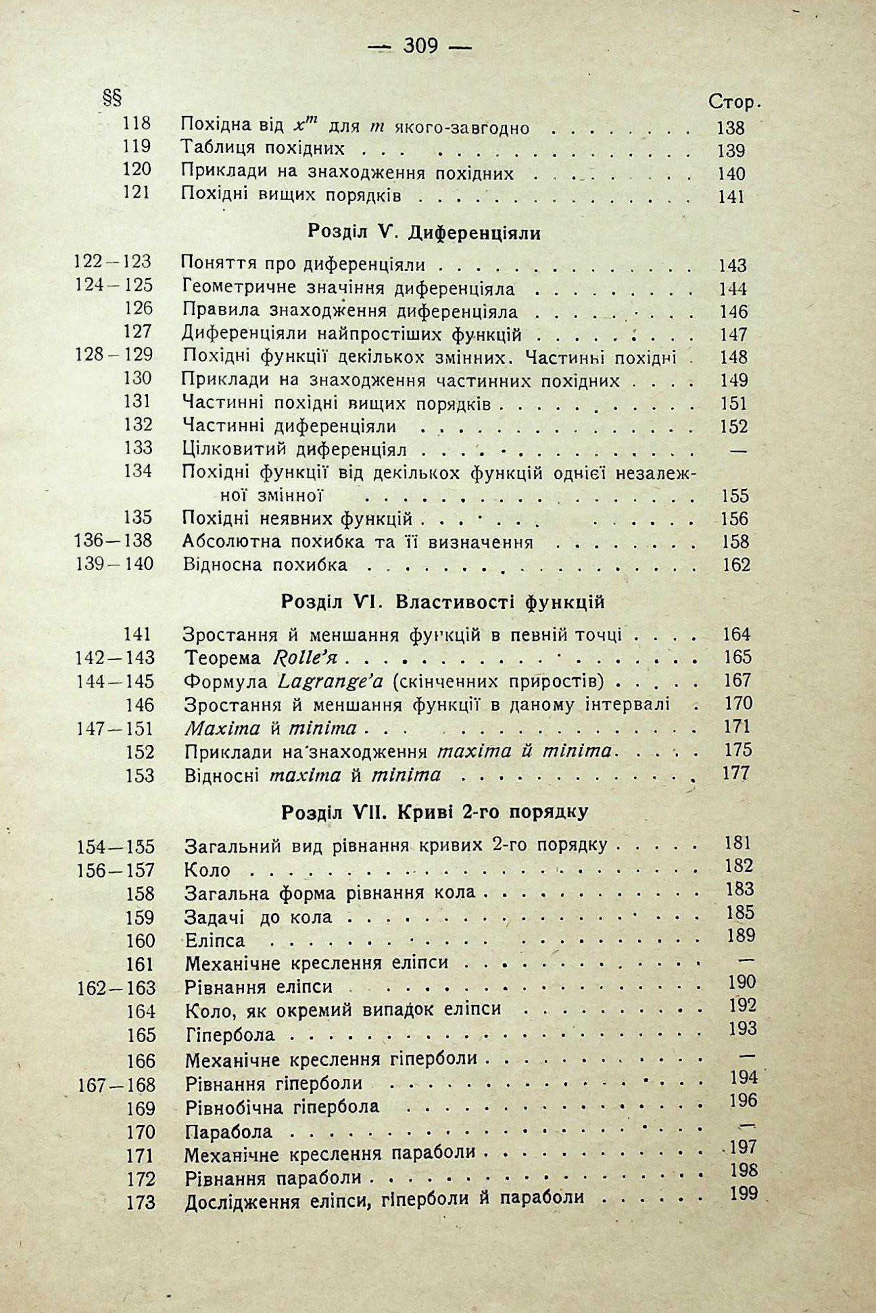 РОЗДІЛ V. IВЛАСТИВОСТІ ФУНКЦІЙ. РОЗДІЛ VII. КРИВІ 2-ГО ПОРЯДКУ