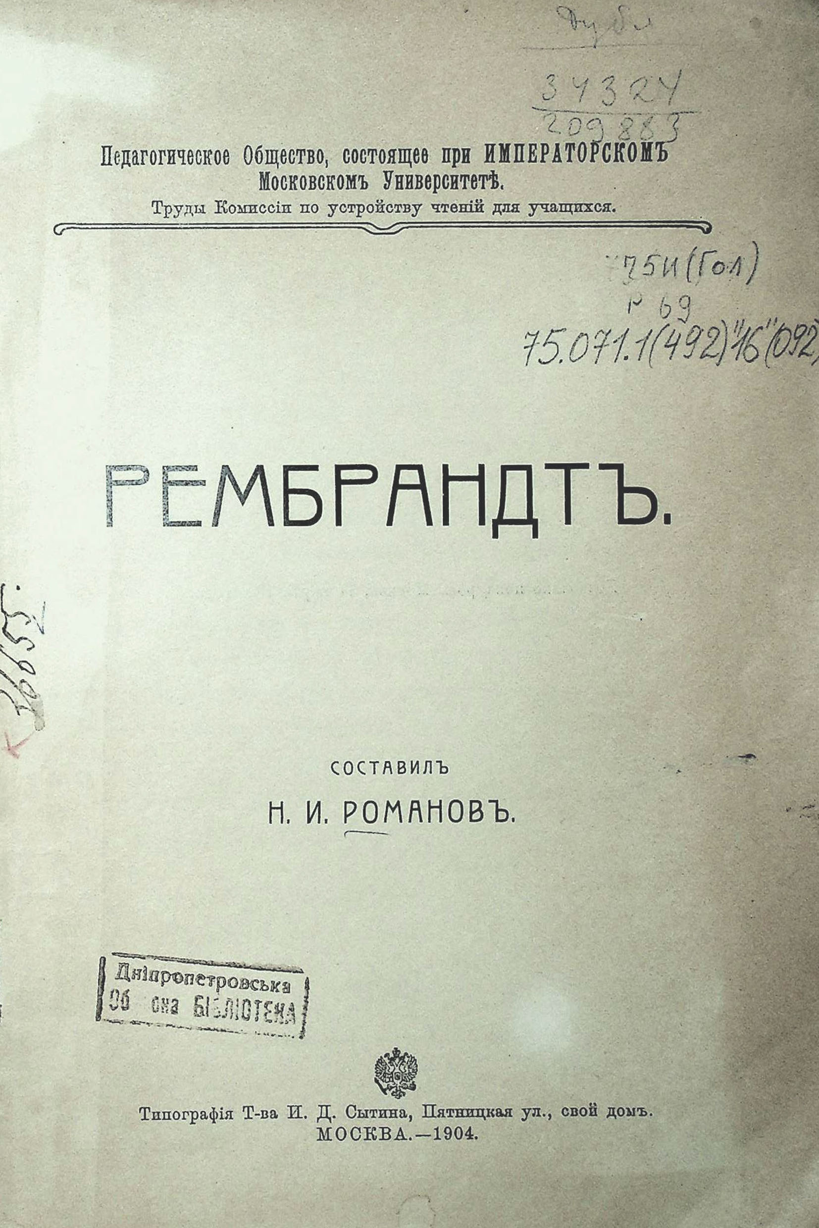 РЕМБРАНДЪ. Составилъ Н. И. Романовъ