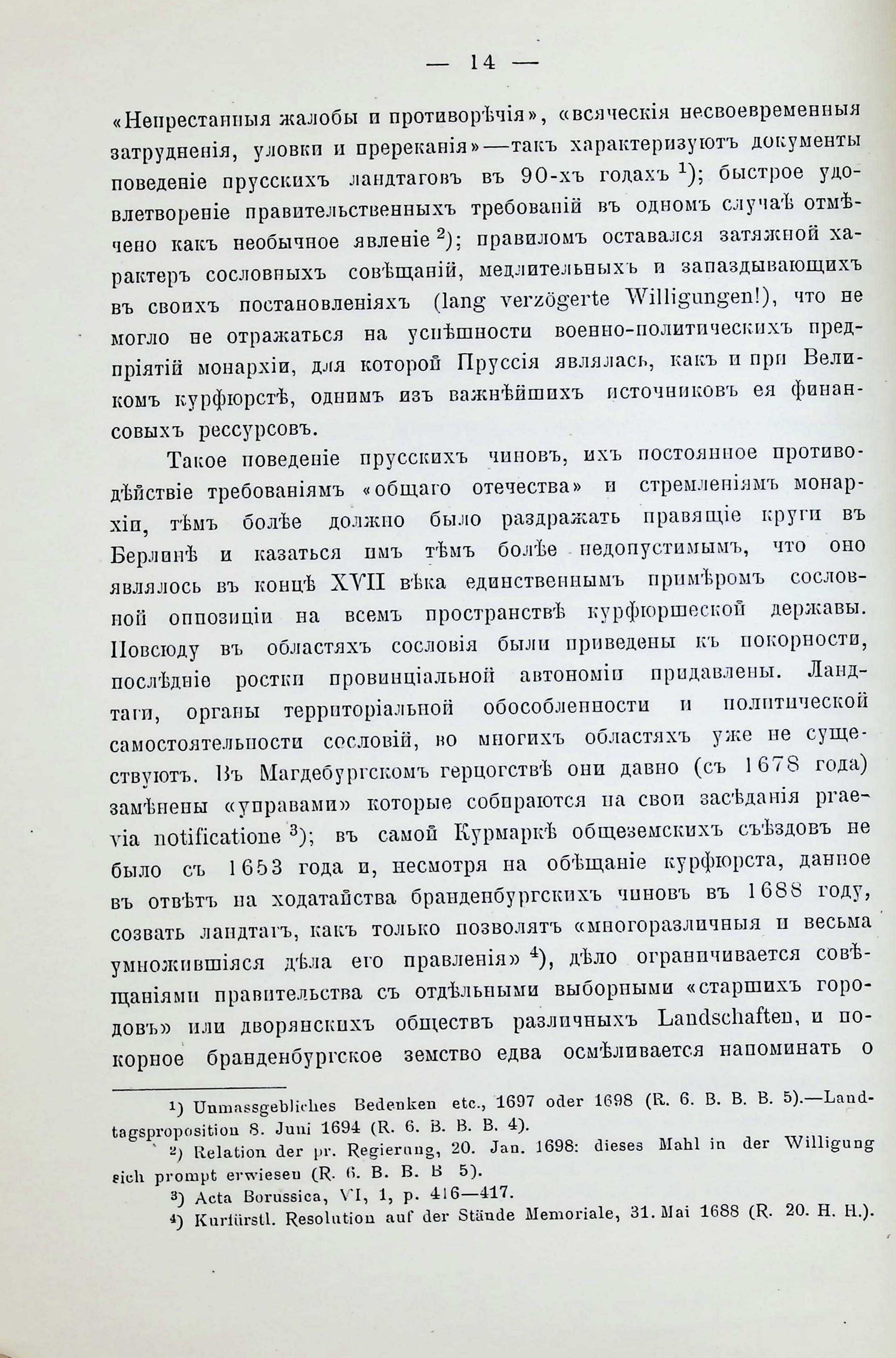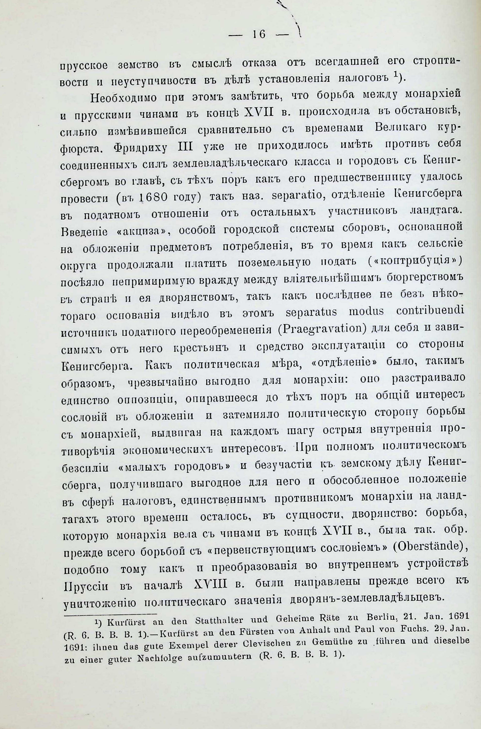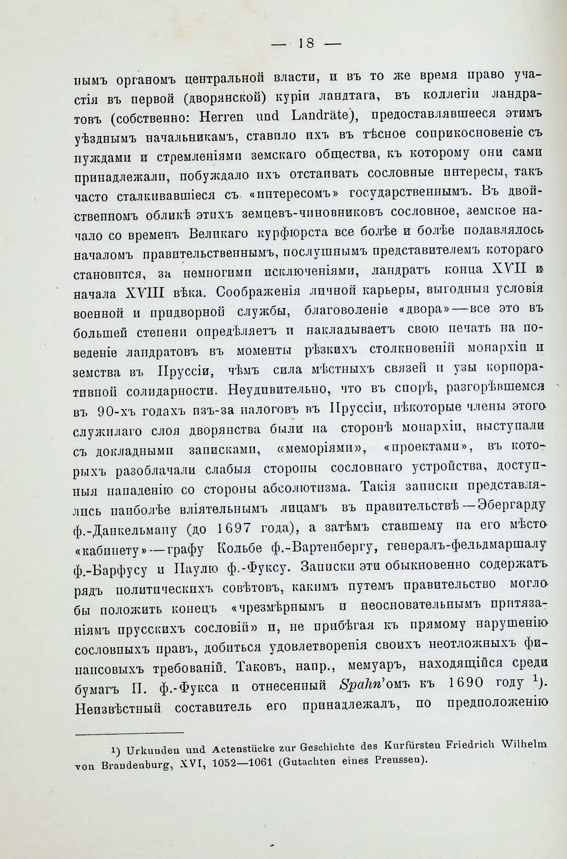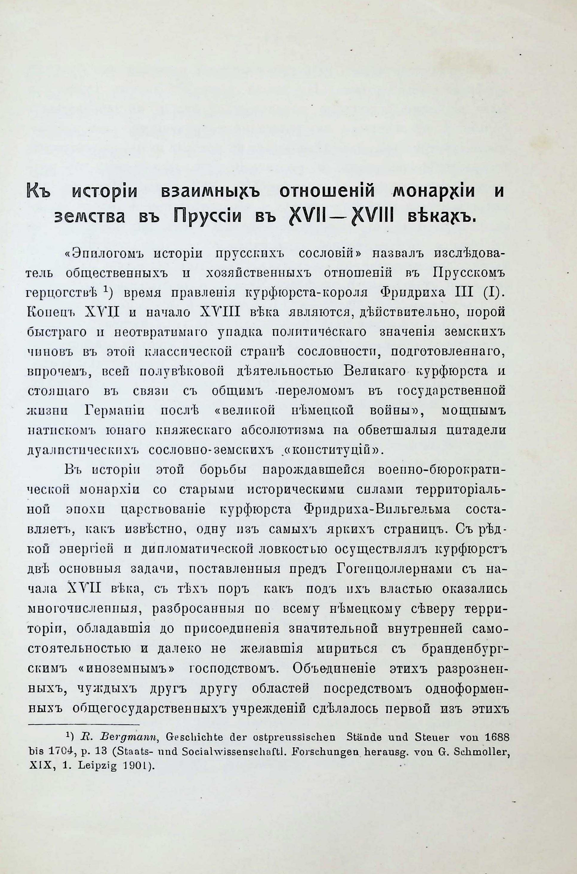 Къ исторія взаимныхъ отношешй монархіи й земства въ Пруссіи въ ХVII-ХVIII векахъ