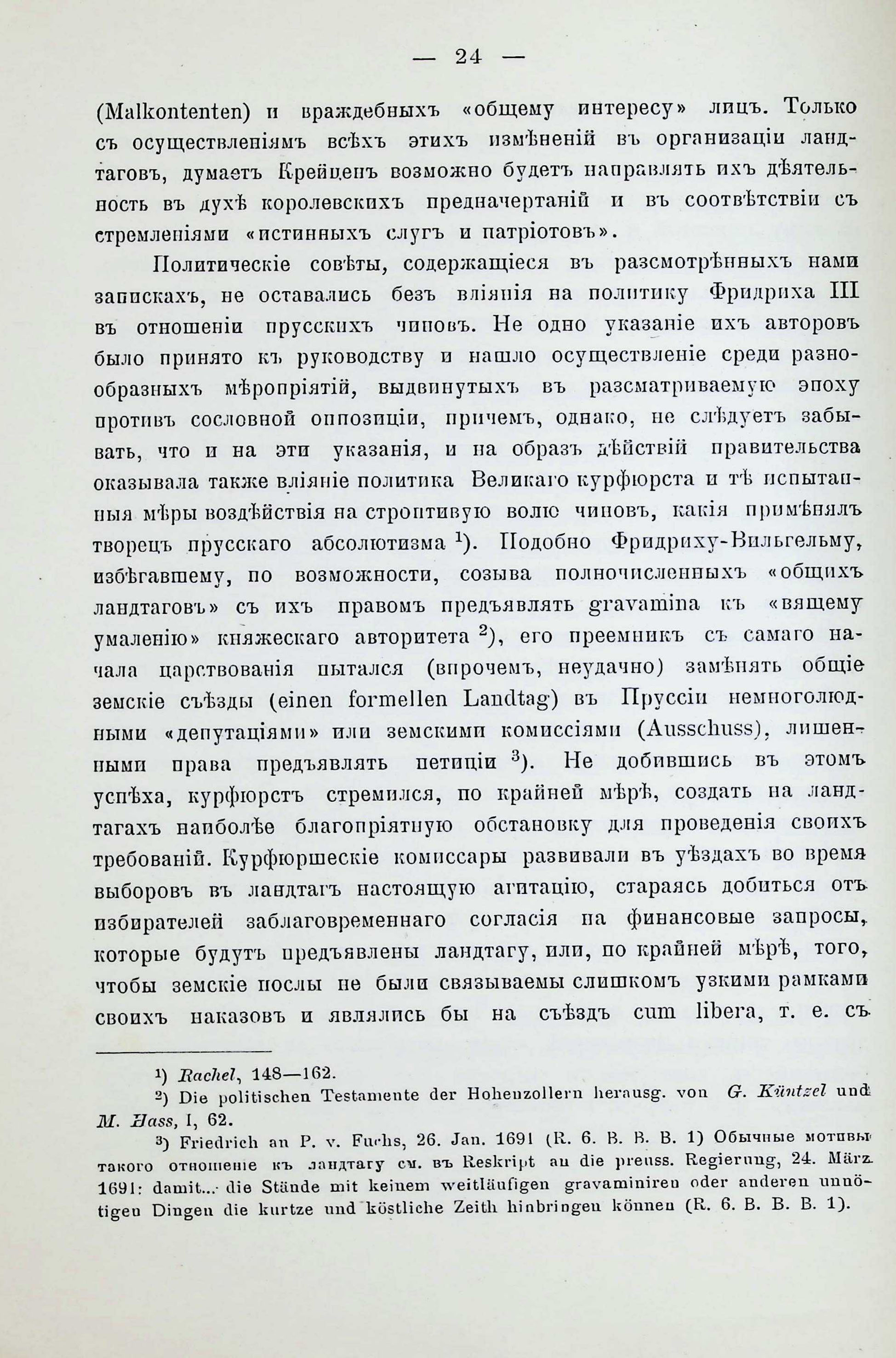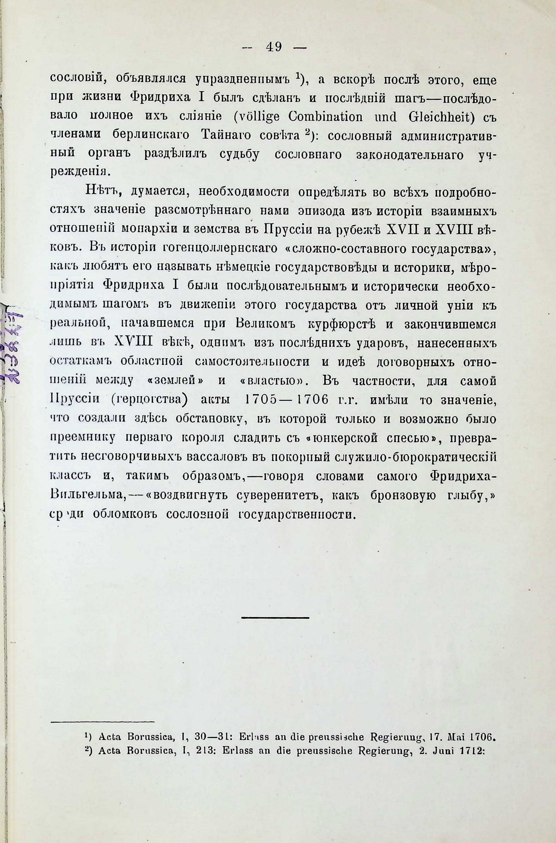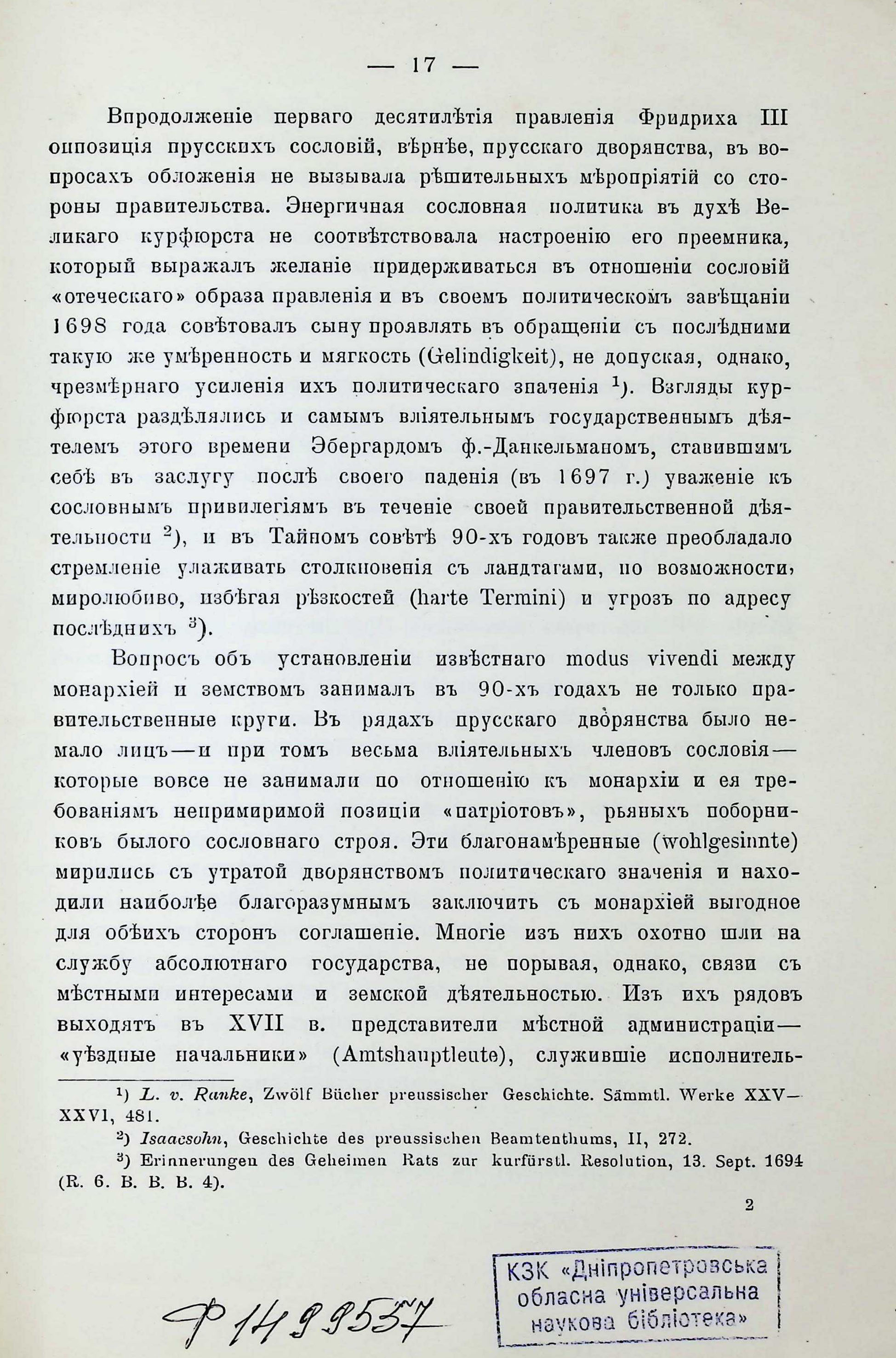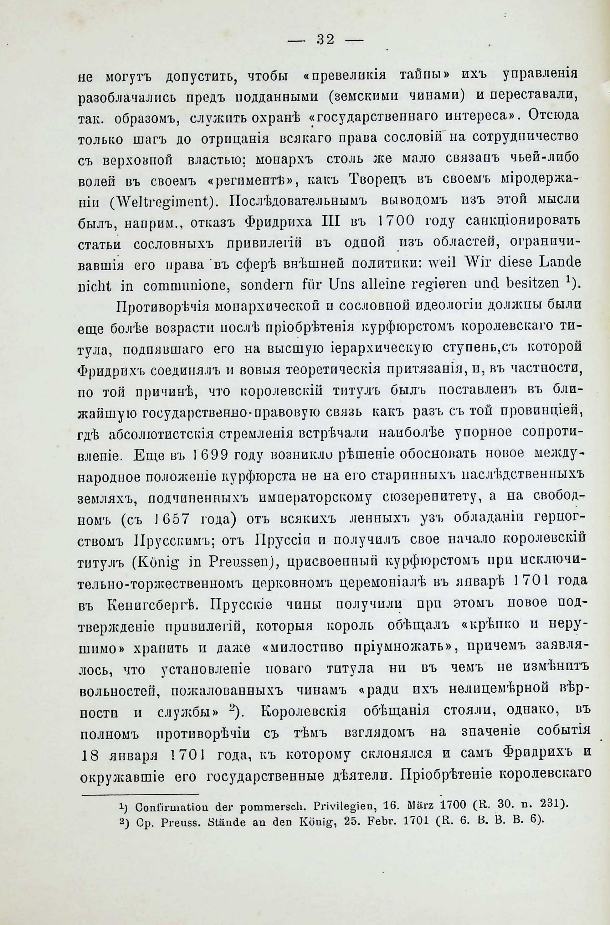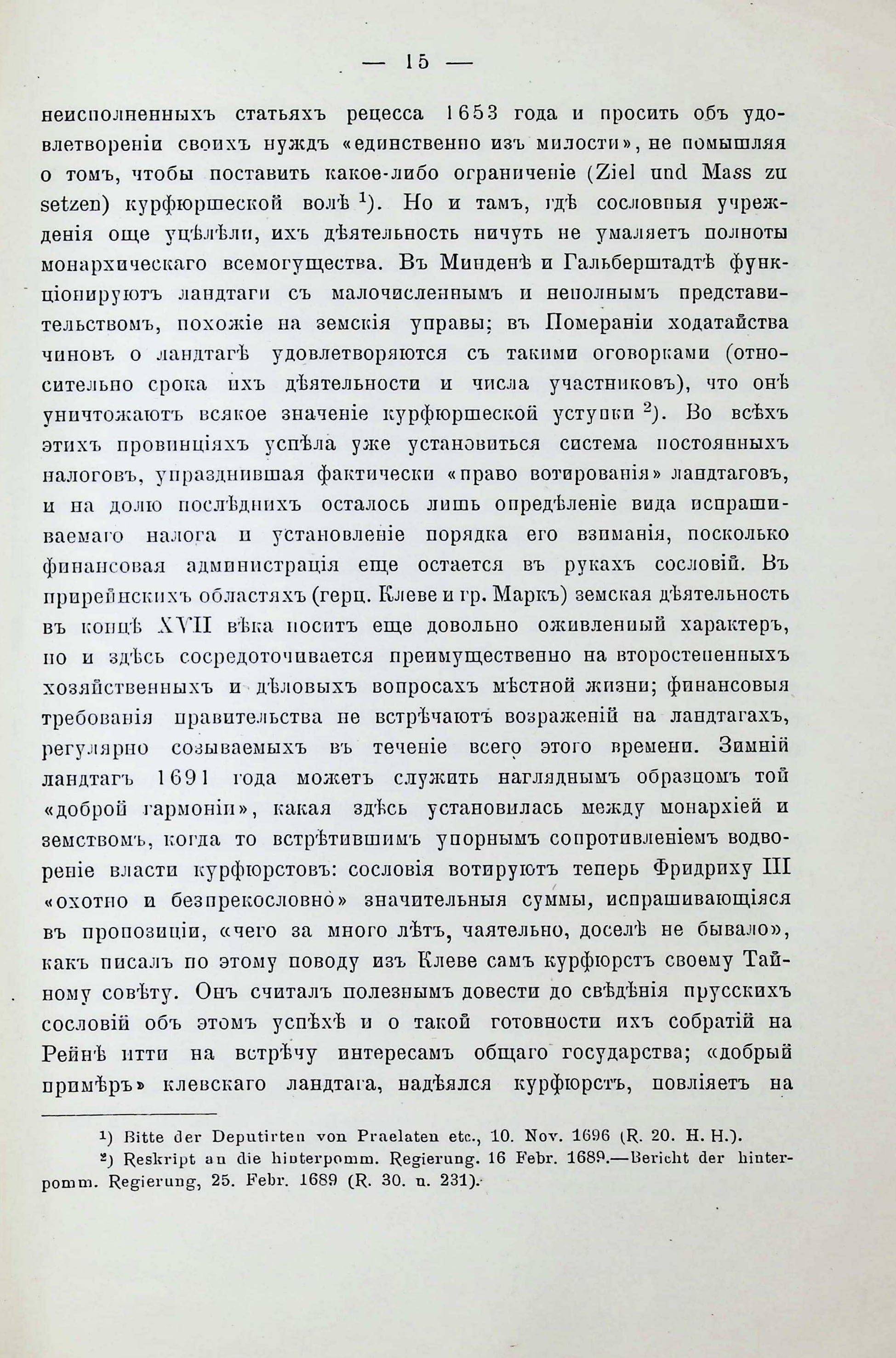 Къ исторія взаимныхъ отношешй монархіи й земства въ Пруссіи въ ХVII-ХVIII векахъ